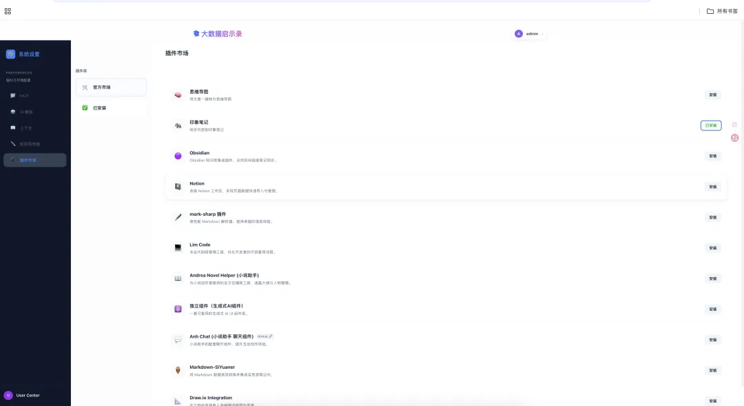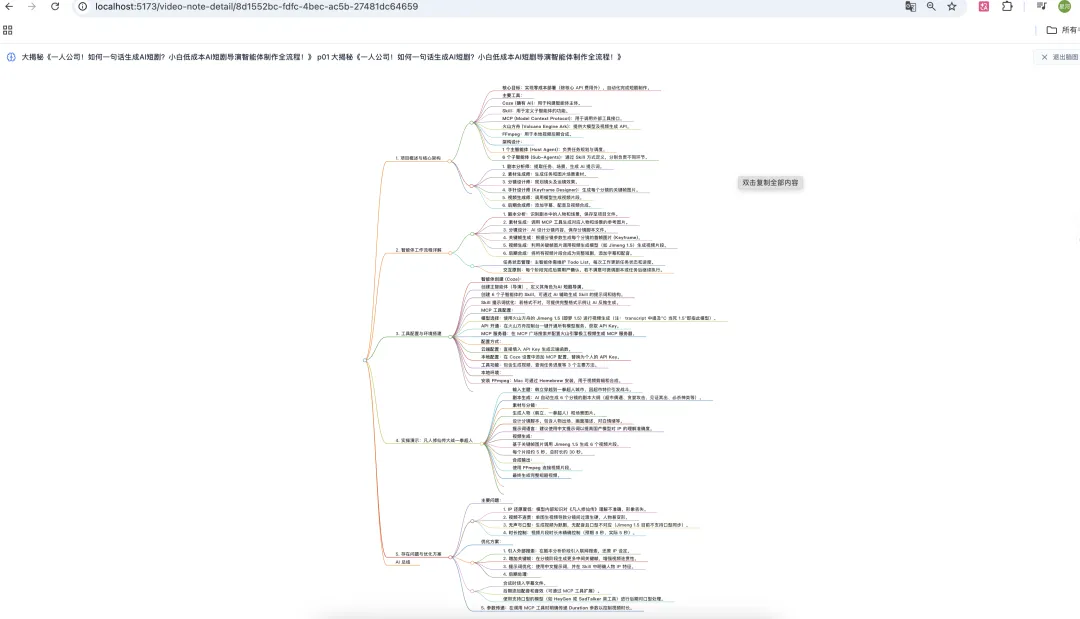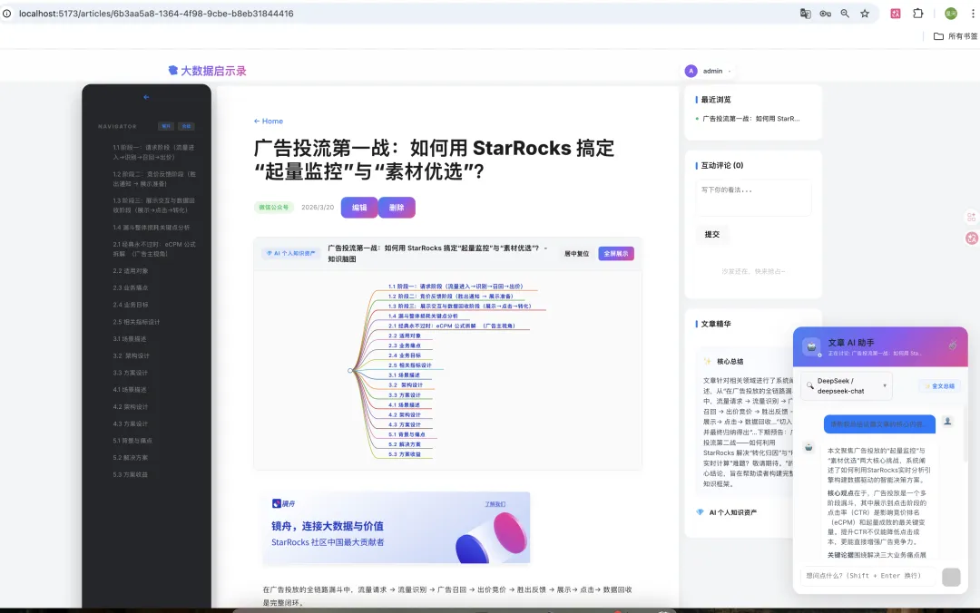 - 知识库与思维导图 :支持 Markmap 渲染,将文章结构一键可视化为思维导图;支持复杂 PDF 及多种文档格式的解析与导入导出。
