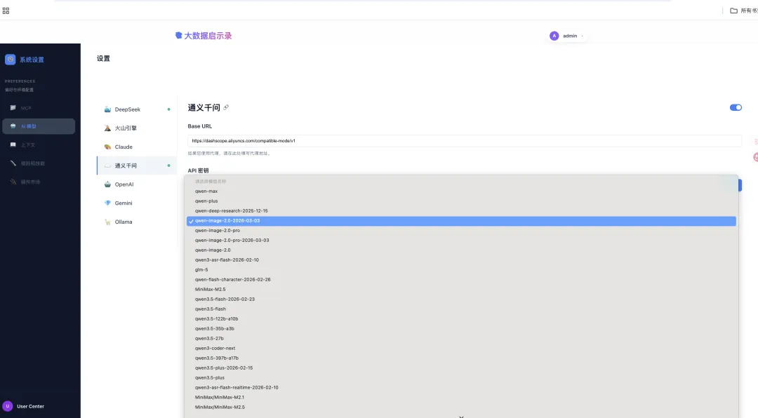 - AI 智能助手 (AI Chat) :内置多模型 AI 问答(已接入 OpenAI、DeepSeek、Qwen、Groq 等),支持文档对话、内容创作辅助。