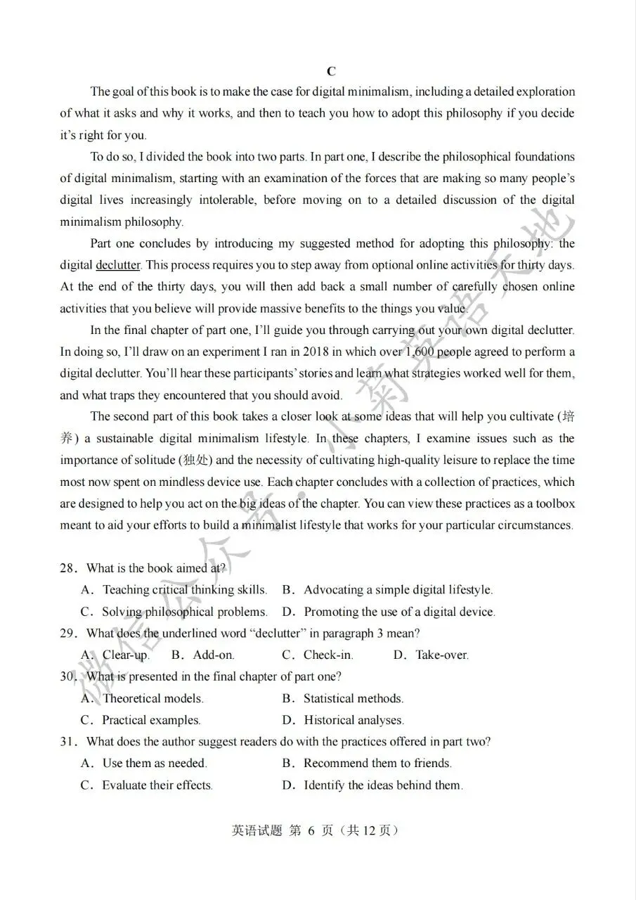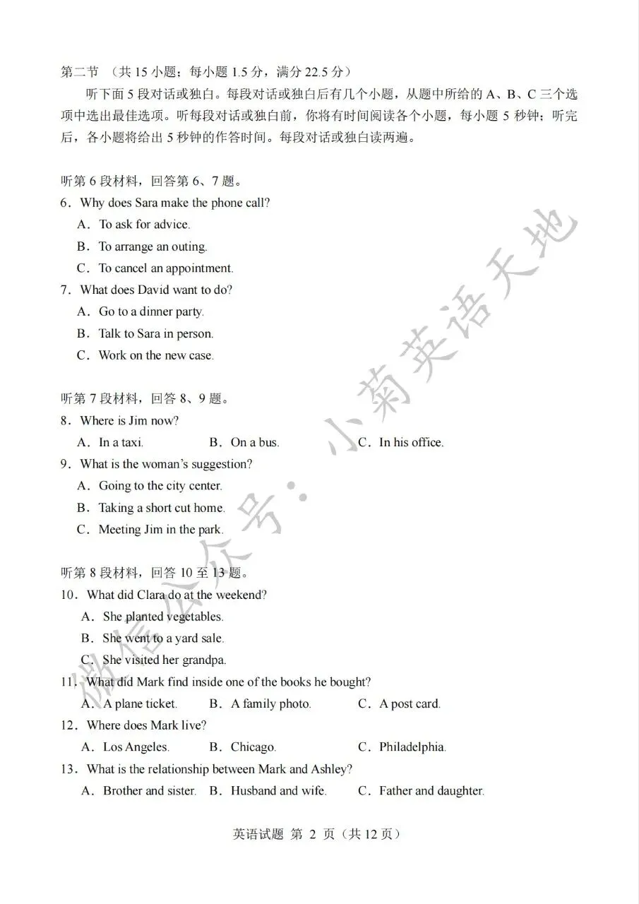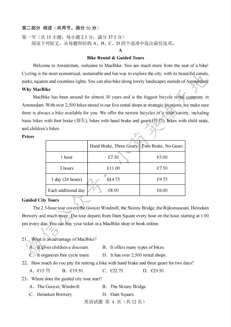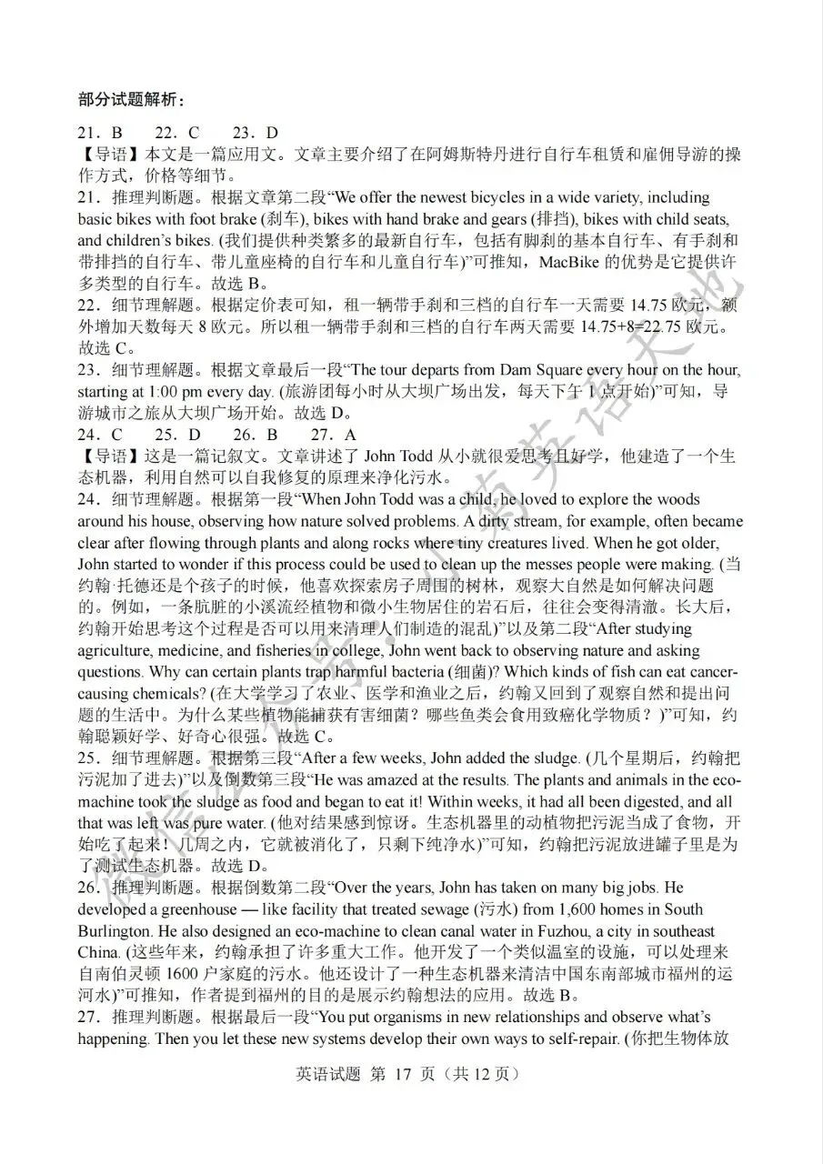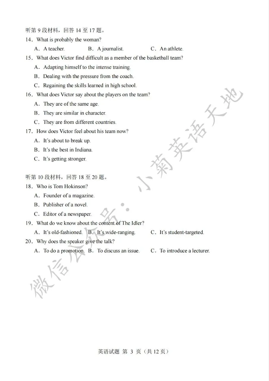 分享2023年高考新课标一卷英语试题(PDF重制版)(含答案解析+听力音频)