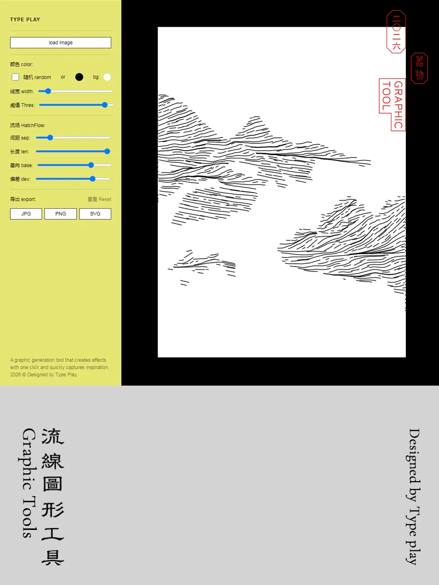 最终效果可导出为高清JPG、PNG格式和SVG矢量格式,既适合用于海报、视觉实验,也可作为概念设计的灵感工具。整体体验轻量直观,非常适合设计师进行快速风格化实验与图形创作。
