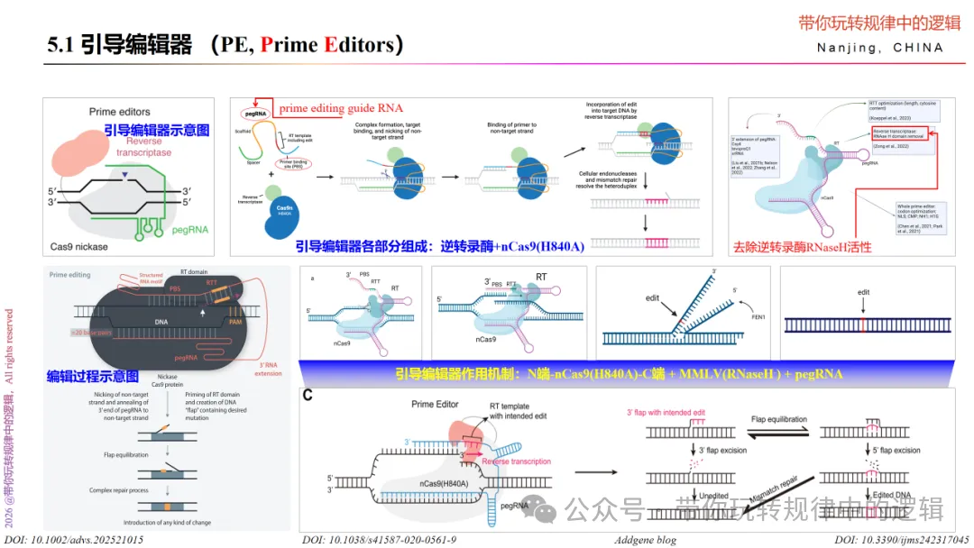 上述的单碱基编辑器、双碱基编辑器、以及三碱基编辑器,都会在后续的细胞内修复或者DNA复制机制进行碱基的替换或转换时产生副产物、以及脱靶的比率。那么,可否开发出一种工具来解决此类问题呢?于是引导编辑器被设计出来了。