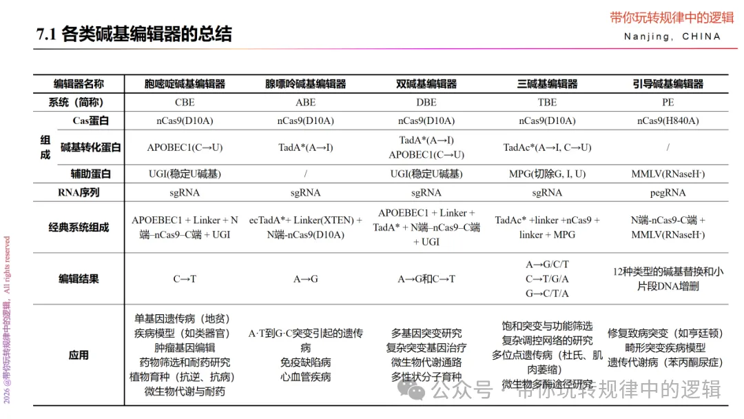 根据以上对各类碱基编辑器的讲解,不同的碱基编辑器都是依赖特定的碱基转换酶或者组合来达到碱基编辑的目的的。当然,引导编辑器是不涉及碱基转换酶的,取而代之的是通过逆转录酶引入待替换的碱基序列。