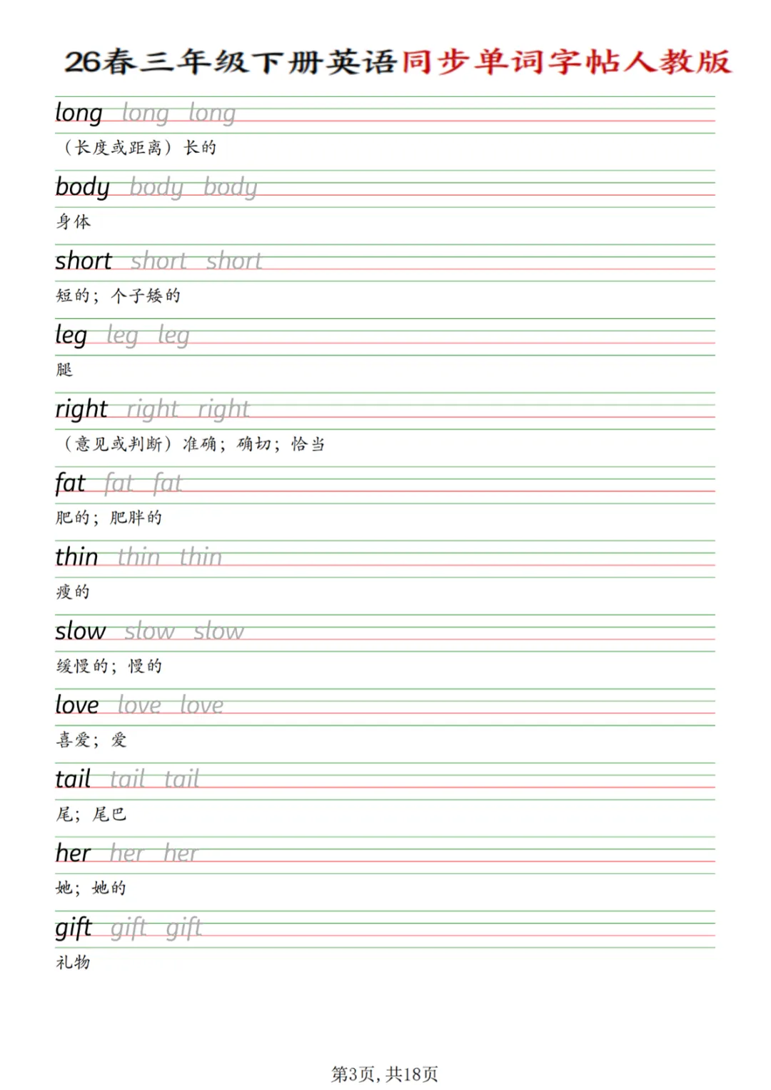 【高清电子版】三年级下英语同步单词字帖《人教版》