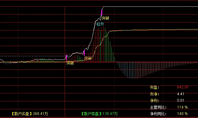 高手:=C/REF(C,1)>1.048 AND C=H AND BETWEEN(FORCAST(V,4),0.2*FORCAST(V,12),2.1*FORCAST(V,12));