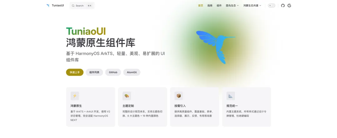 TuniaoUI 鸿蒙版 TuniaoUI 鸿蒙版是一套基于 HarmonyOS ArkTS 开发的原生 UI 组件库,由经典的 TuniaoUI Vue3 移植适配而来。 提供大量高质量组件,覆盖基础展示、表单输入、选择器、反馈提示、布局容器等常见场景,帮助开发者快速构建美观、一致的鸿蒙应用界面。