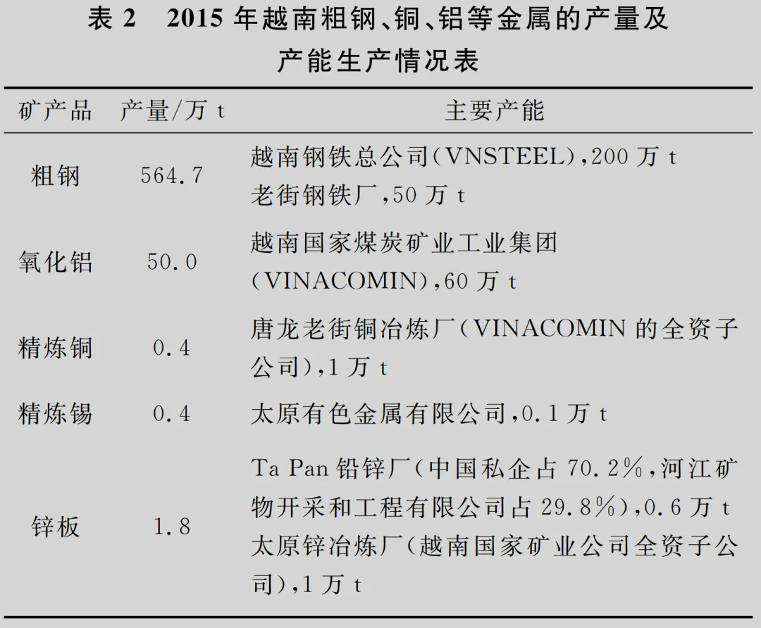 •中国企业参股的 Ta Pan 铅锌矿,占越南铅锌矿总产量的 70%,是越南最大的铅锌矿生产基地;