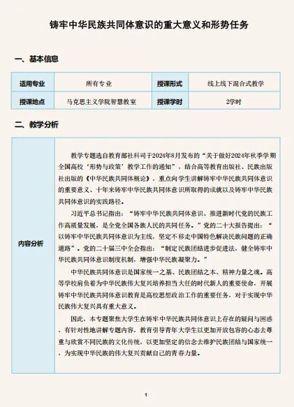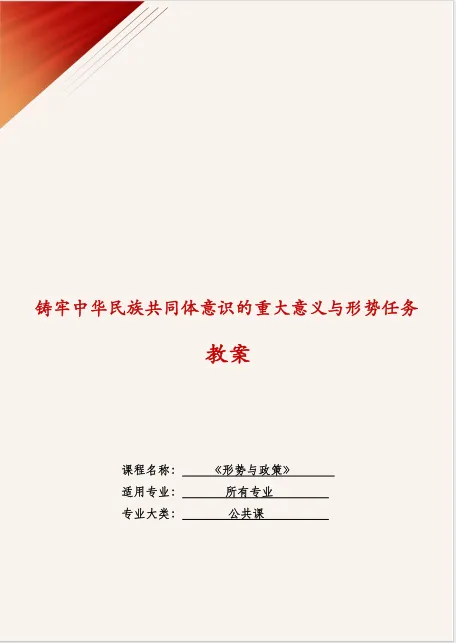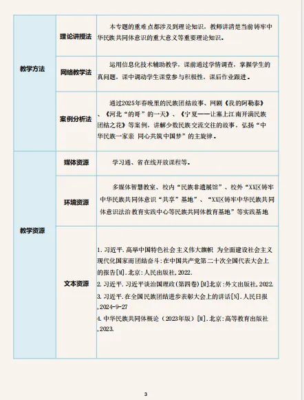 本期展示的作品为2025年度获奖作品,资源类型为教案,名称为“铸牢中华民族共同体意识的重大意义与形势任务”,课程为《形势与政策》,作者为李易轩。