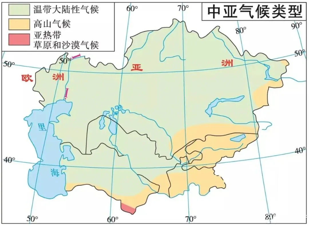 中亚气候类型分布图
