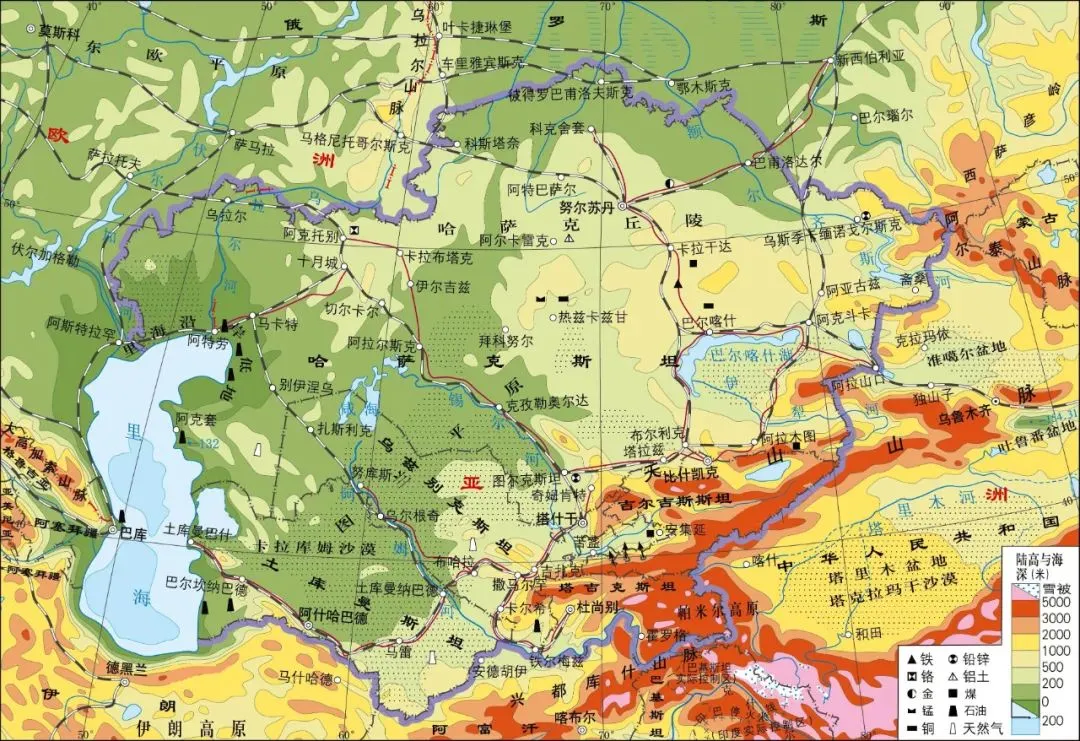 中亚地区主要沙漠分布图