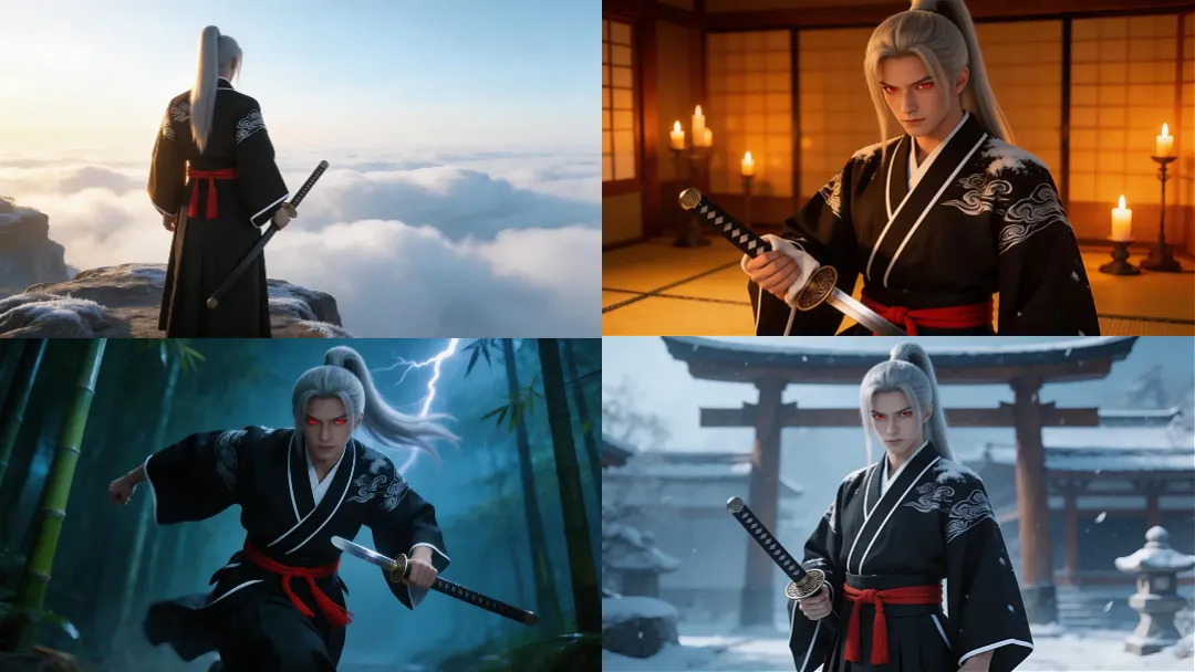同一句话,生成10次,10个样。好不容易出来个能用的,换个镜头,主角直接“换脸”了——上一秒银发红瞳剑客,下一秒挥剑,头发变黑了,衣服花纹全没了。
