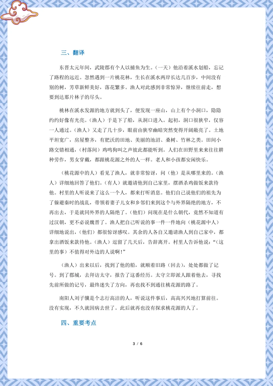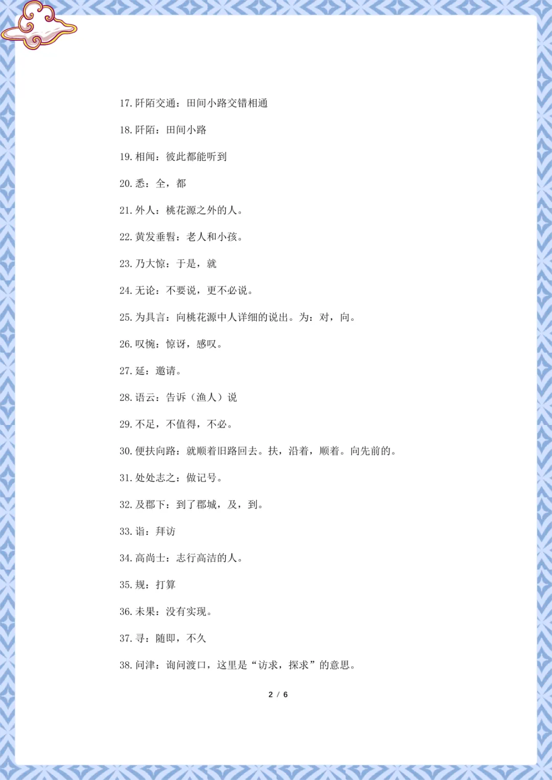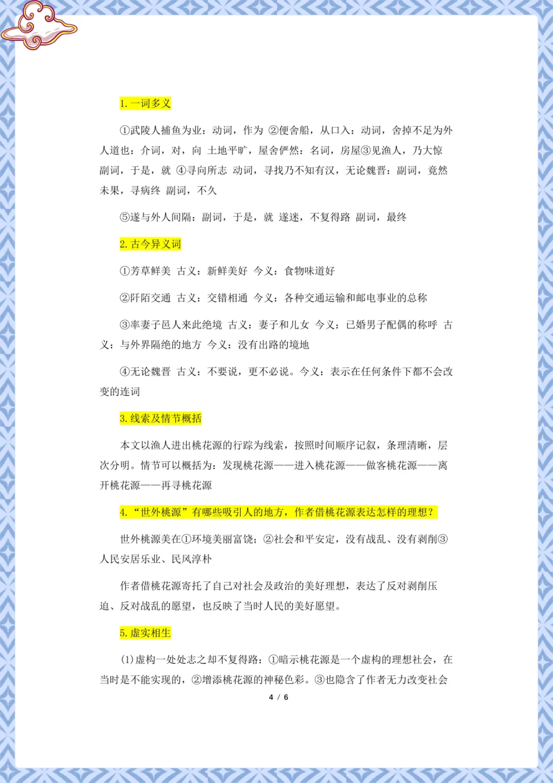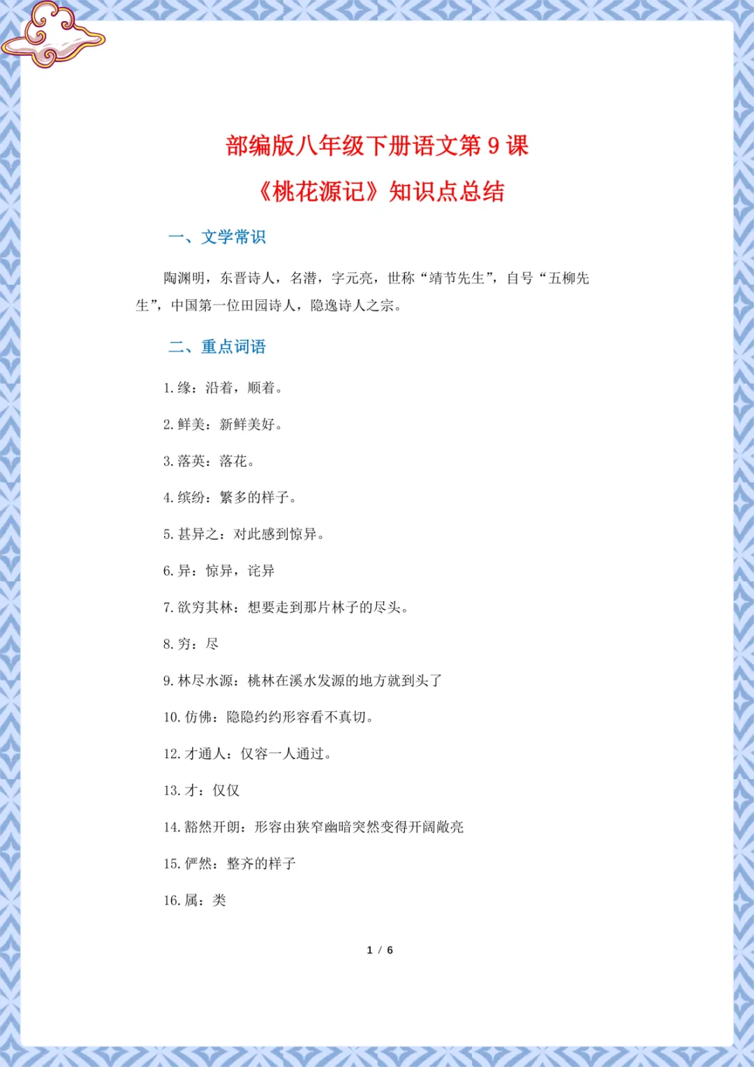部编版八年级下册语文:第9课《桃花源记》知识点总结 电子版可下载打印