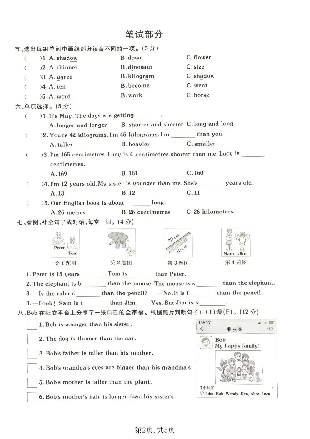 《26春最新英语第一单元测试卷》题型丰富,涵盖听力、词汇、语法与阅读。听力部分通过选句、排序、补全短文等形式,全面考查听力理解;笔试包含选择、填空、连词成句及任务型阅读,综合检验语言运用能力。难度适中,既能巩固基础,又可提升英语综合素养。高清版本直接打印方便孩子复习总结!✍🏻欢迎转发到班级群,助力更多孩子学习进步!