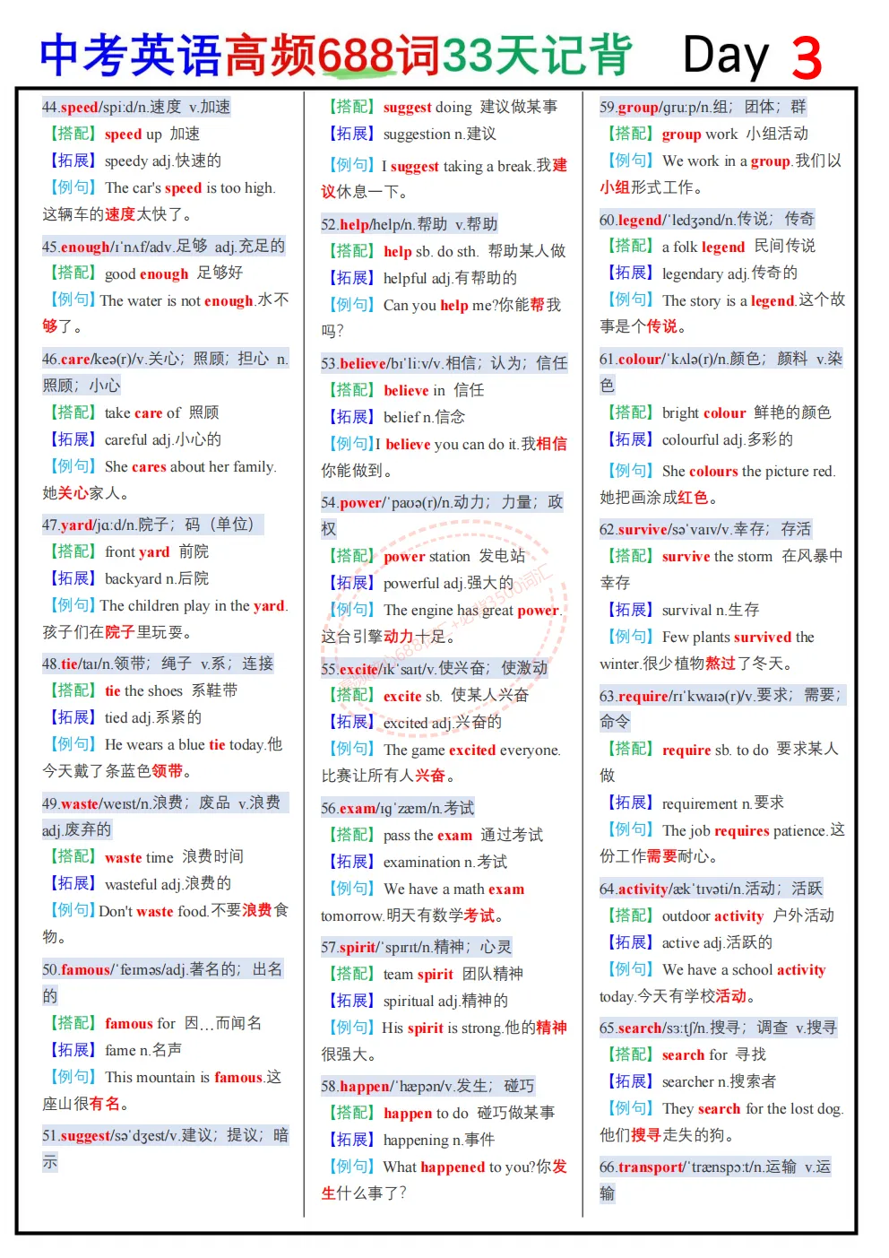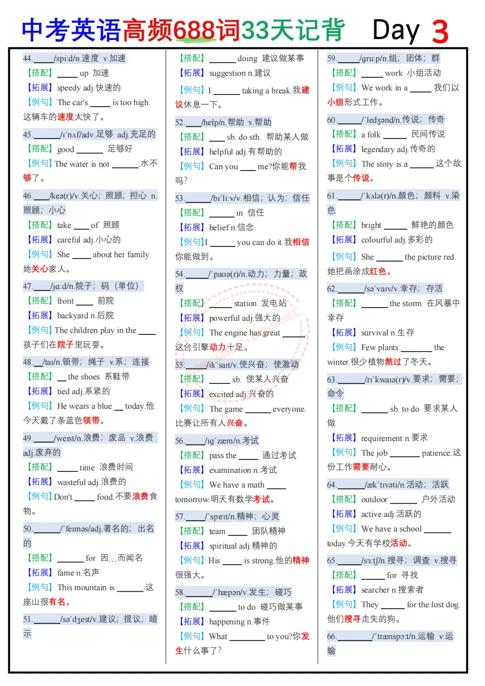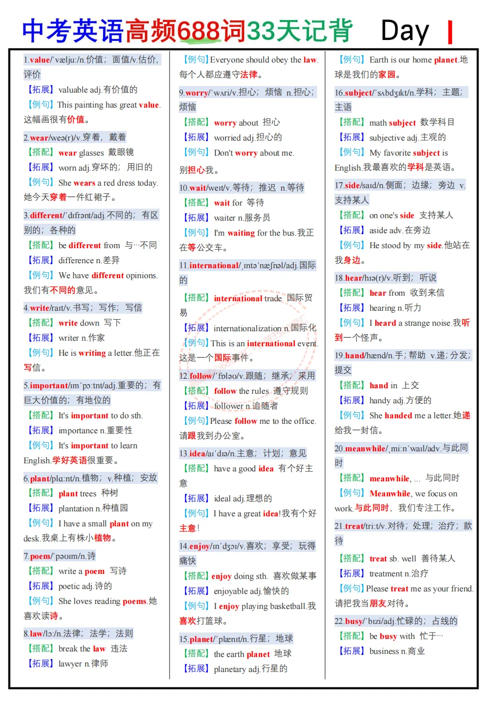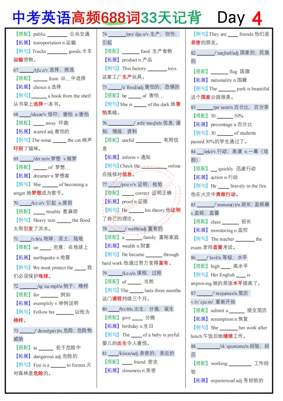 【中考资源】【高频核心688+必背3500词汇】《单词默写本+自测本》英译汉+汉译英(PDF下载打印)