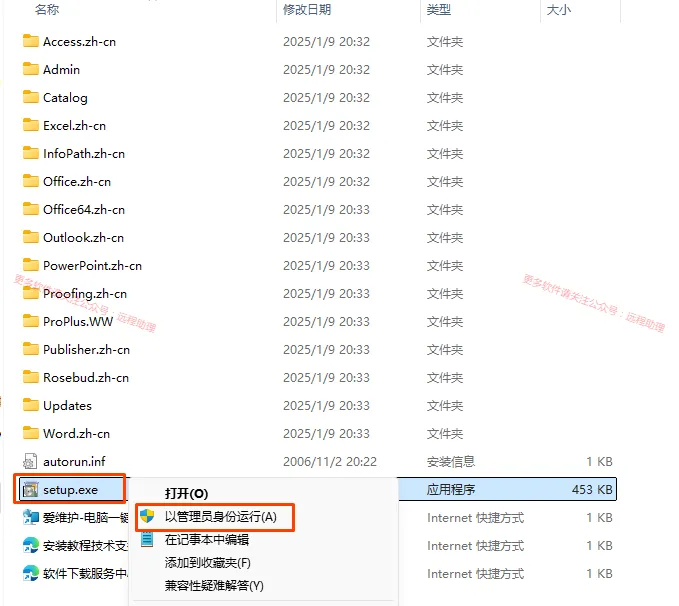 | 2.解压后,找到文件夹中的setup文件,右键以管理员身份运行安装。 |