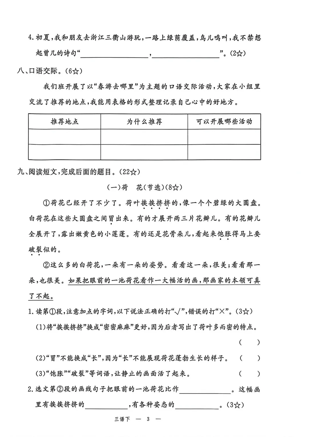 🌟今日给大家分享的:2026年春新部编版三年级下册语文《全册1-8单元素养卷+期中期末测试卷》10套附答案‖电子版可打印