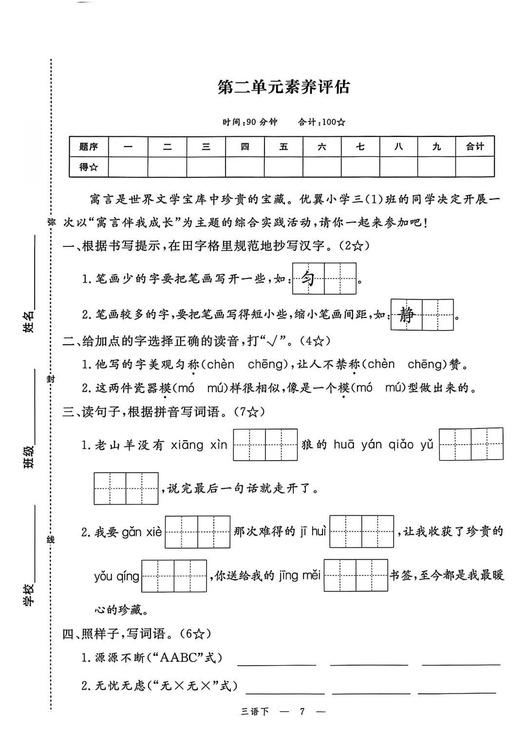2026年春新部编版三年级下册语文《全册1-8单元素养卷+期中期末测试卷》10套附答案‖可打印