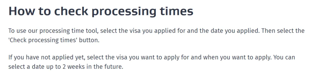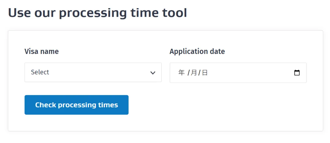 要使用查询工具,先选择你申请的签证类型和申请日期,然后点击“查询处理时间”按钮。