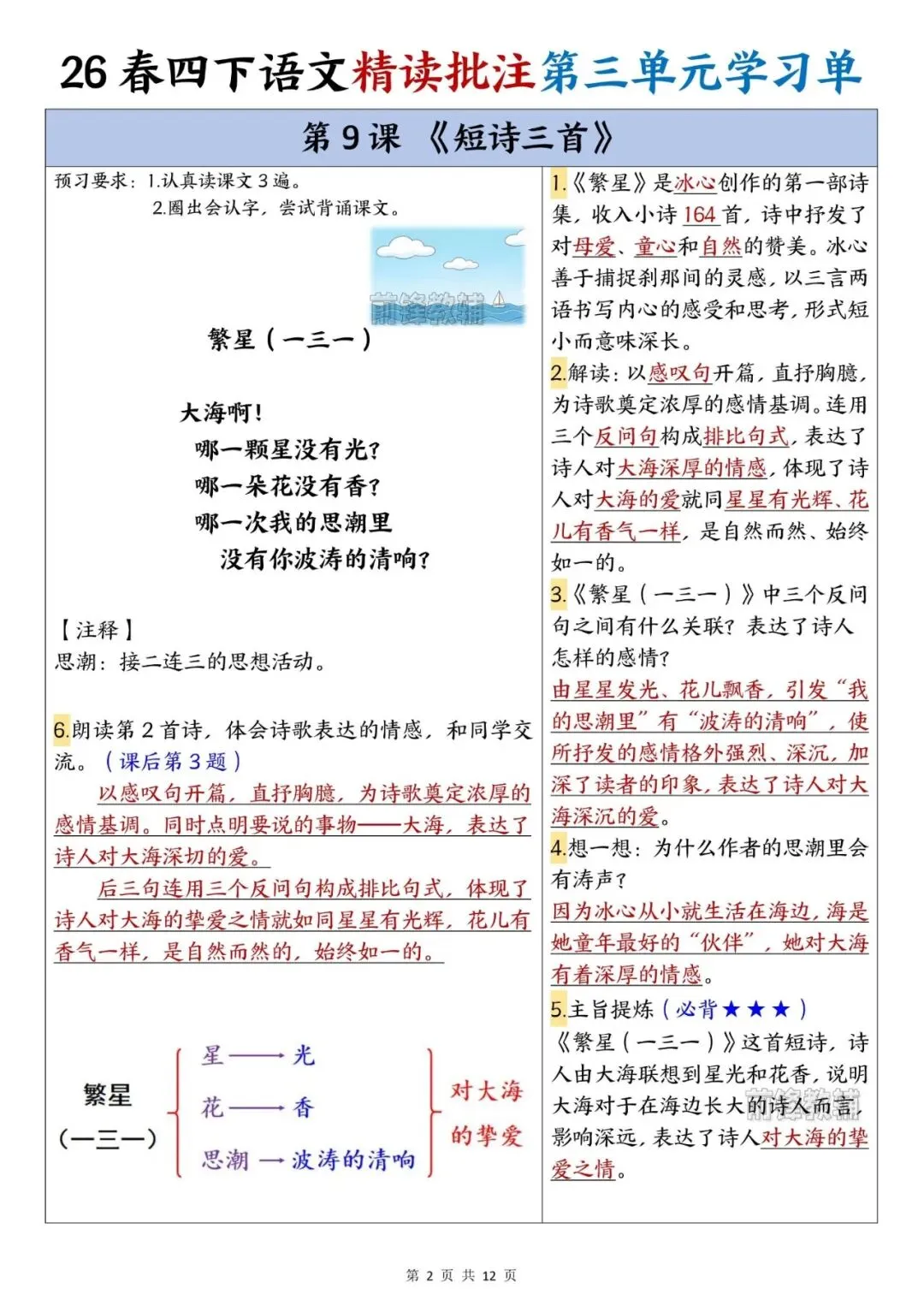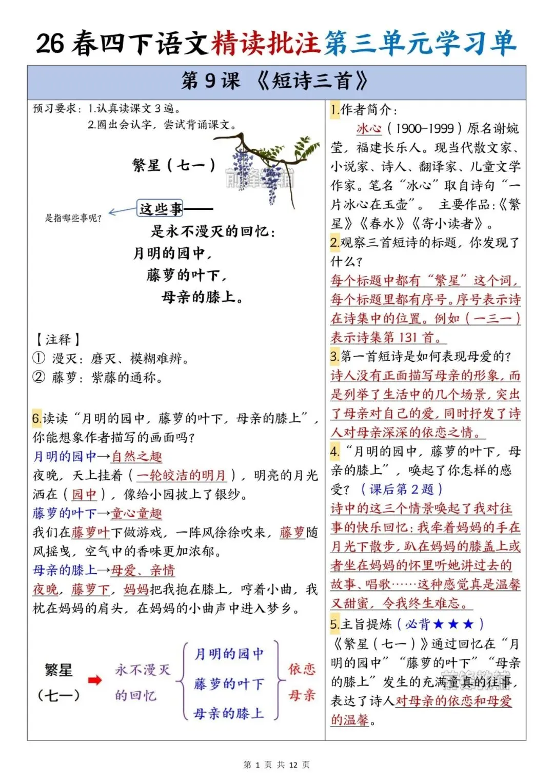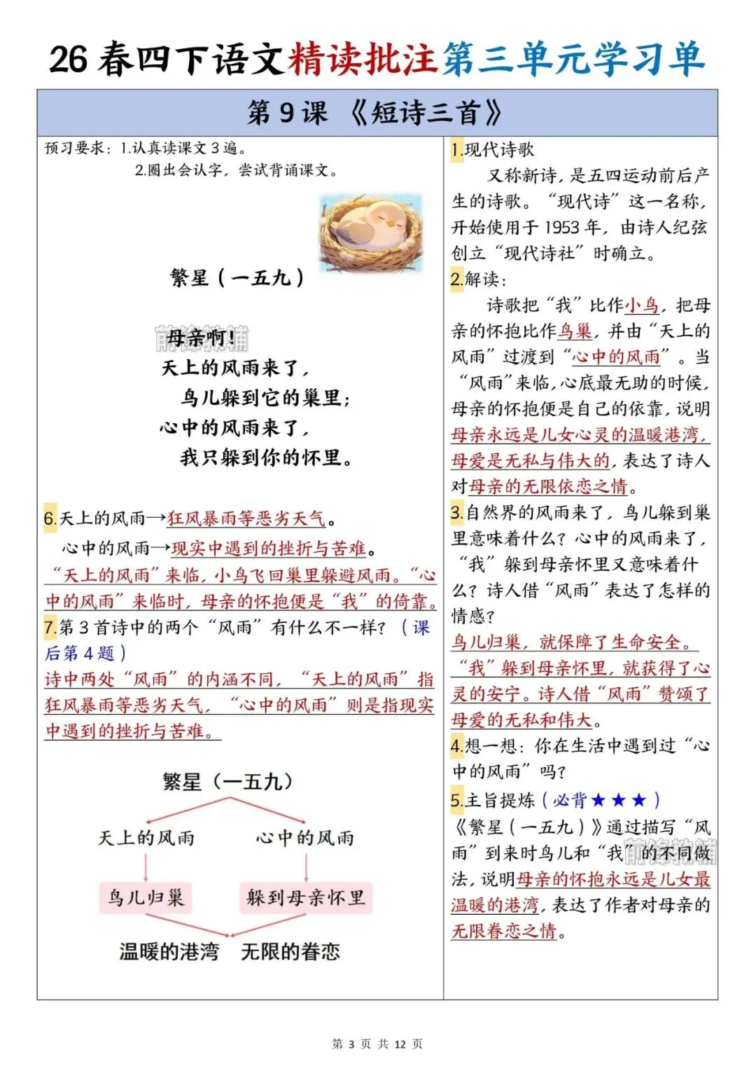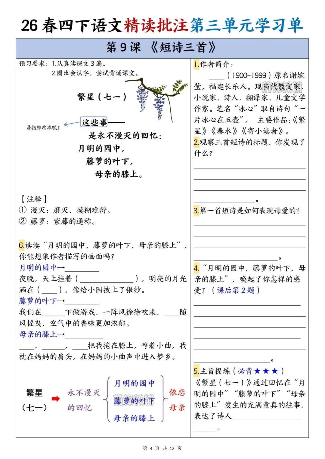 26春四下语文精读批注第三单元学习单(电子版可打印)