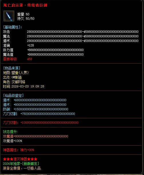 今日新版本 湮灭神器+999999