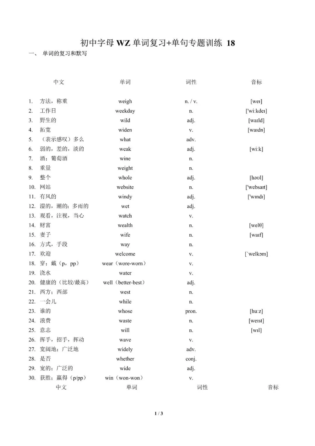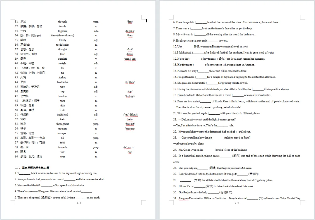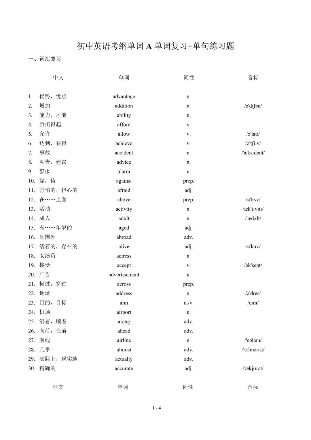 【免费资源分享】初中英语考纲词汇专项训练,打印吃透,稳拿高分!