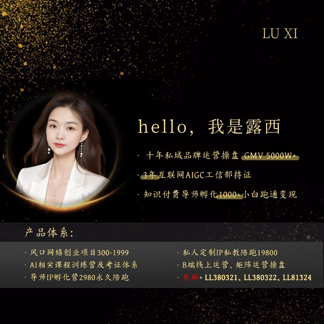 一个用AI和公私域变现体系,帮普通人把业余时间变成稳定收入的 “副业建造师”。十年操盘GMV 5000W+,已亲手带出1000+ 学员跑通变现。我不讲虚的,只交付能直接赚钱的AI工作流和可复制的闭环。