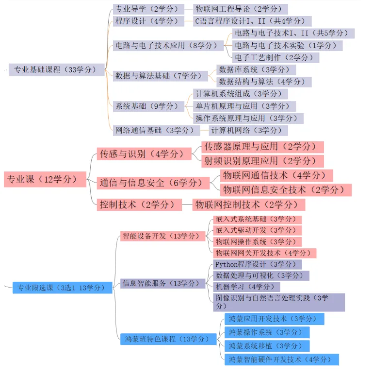 开设的专业核心课:嵌入式系统基础、物联网操作系统、物联网通信技术、物联网控制技术、传感器原理与应用、射频识别原理与应用、物联网信息安全技术、物联网网关开发技术、物联网工程设计与实现、物联网工程毕业实习、物联网工程毕业设计等课程。