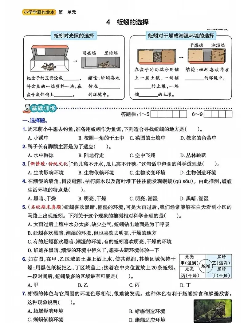 26春小学学霸作业本教科版浙江专版科学三四五六年级下册(电子版可下载打印参考)