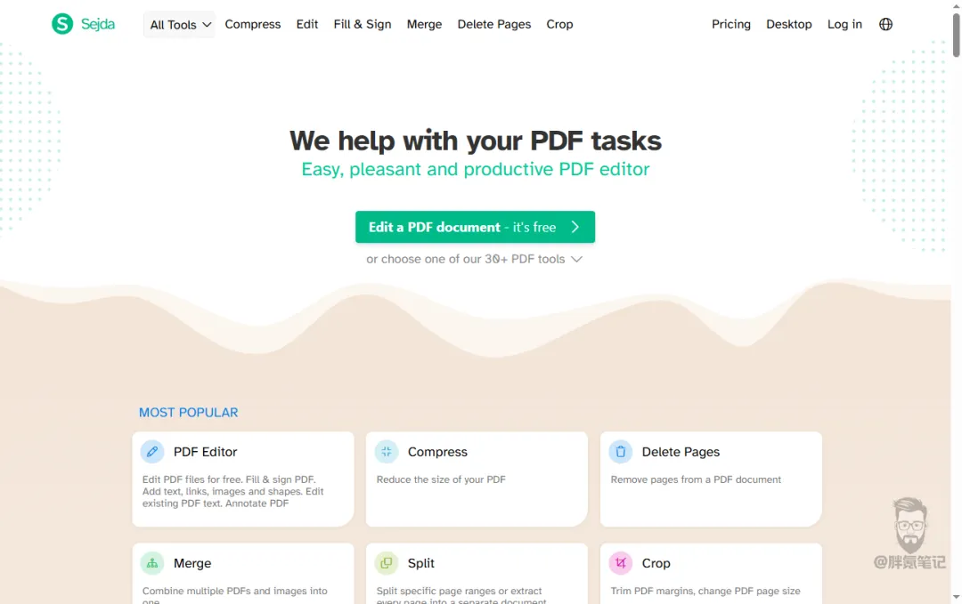 这个工具是我用过最良心的 PDF 工具,完全免费,没有任何功能限制。它有 30 多个在线工具,合并、拆分、压缩、转换、加密、解密都能做。