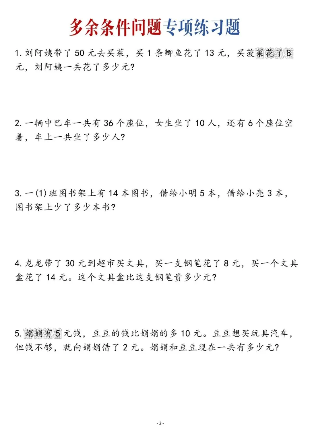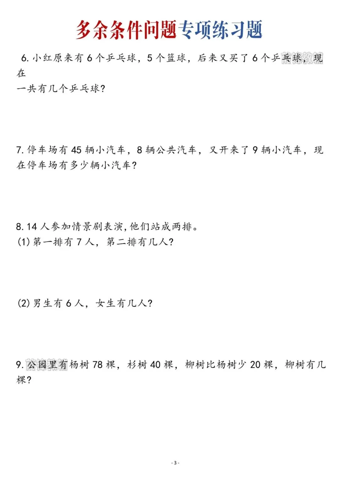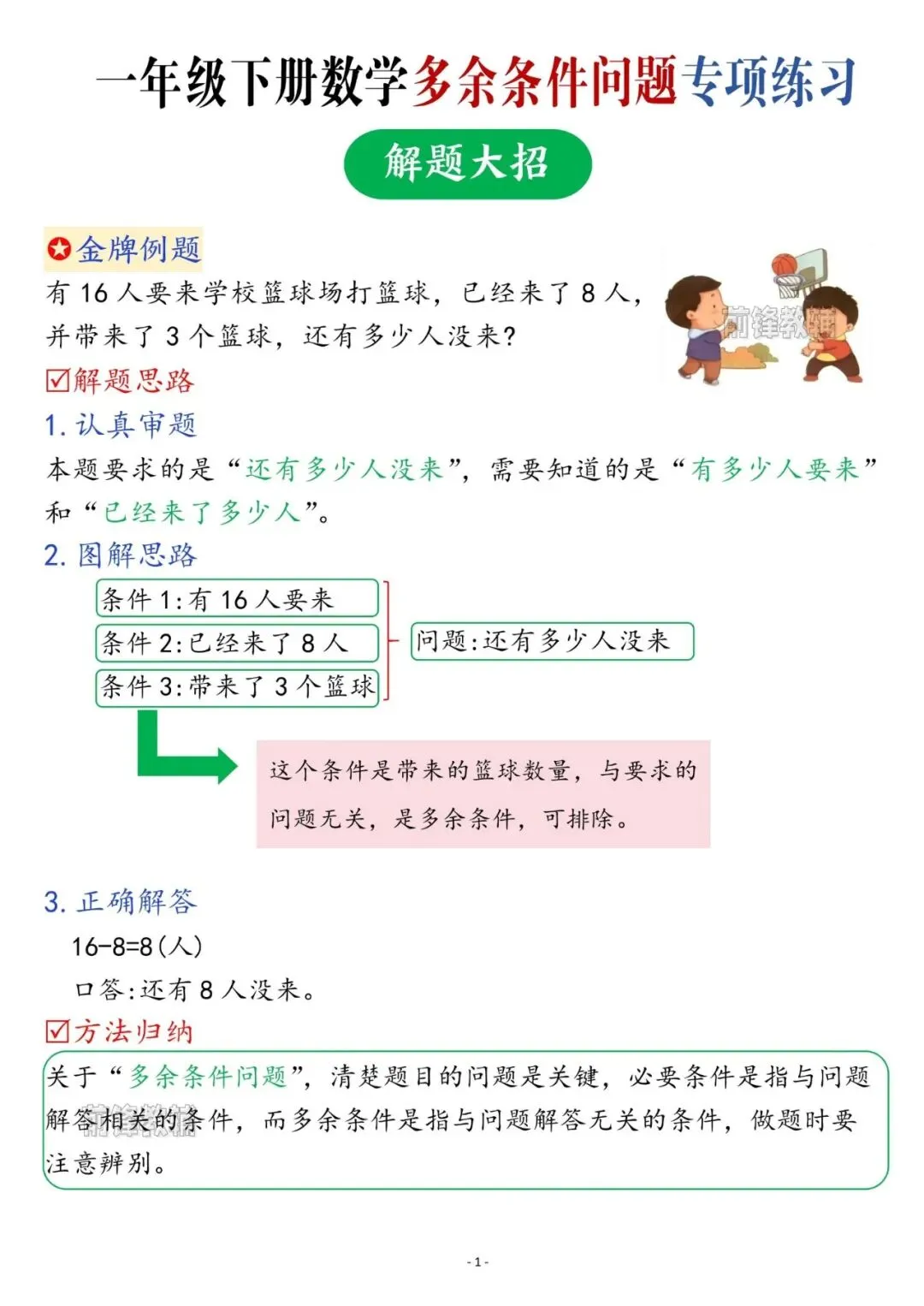 今日为大家更新了最近超火的学习资料,26春一下数学【多余条件问题】专项练习(电子版可打印),建议分享到班级群/年级群,让其他家长打印出来,帮助孩子学习!
