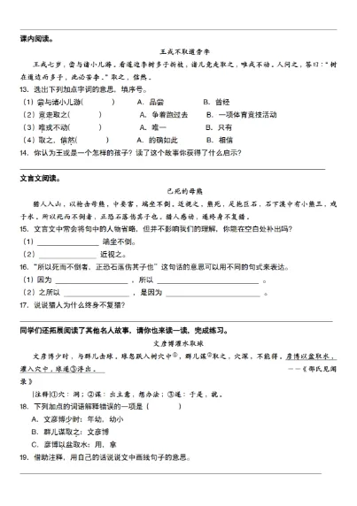 六下语文文言文阅读专项训练,PDF电子版,可打印,免费下载