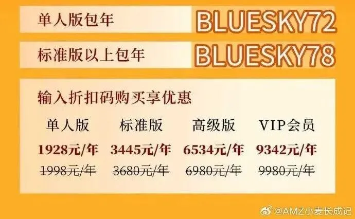 👉🏻标准包年折扣码:BLUESKY78,7.8折优惠,3445/年(3个子账号)、6534/年(6个子账号)、9342/年(10个子账号)