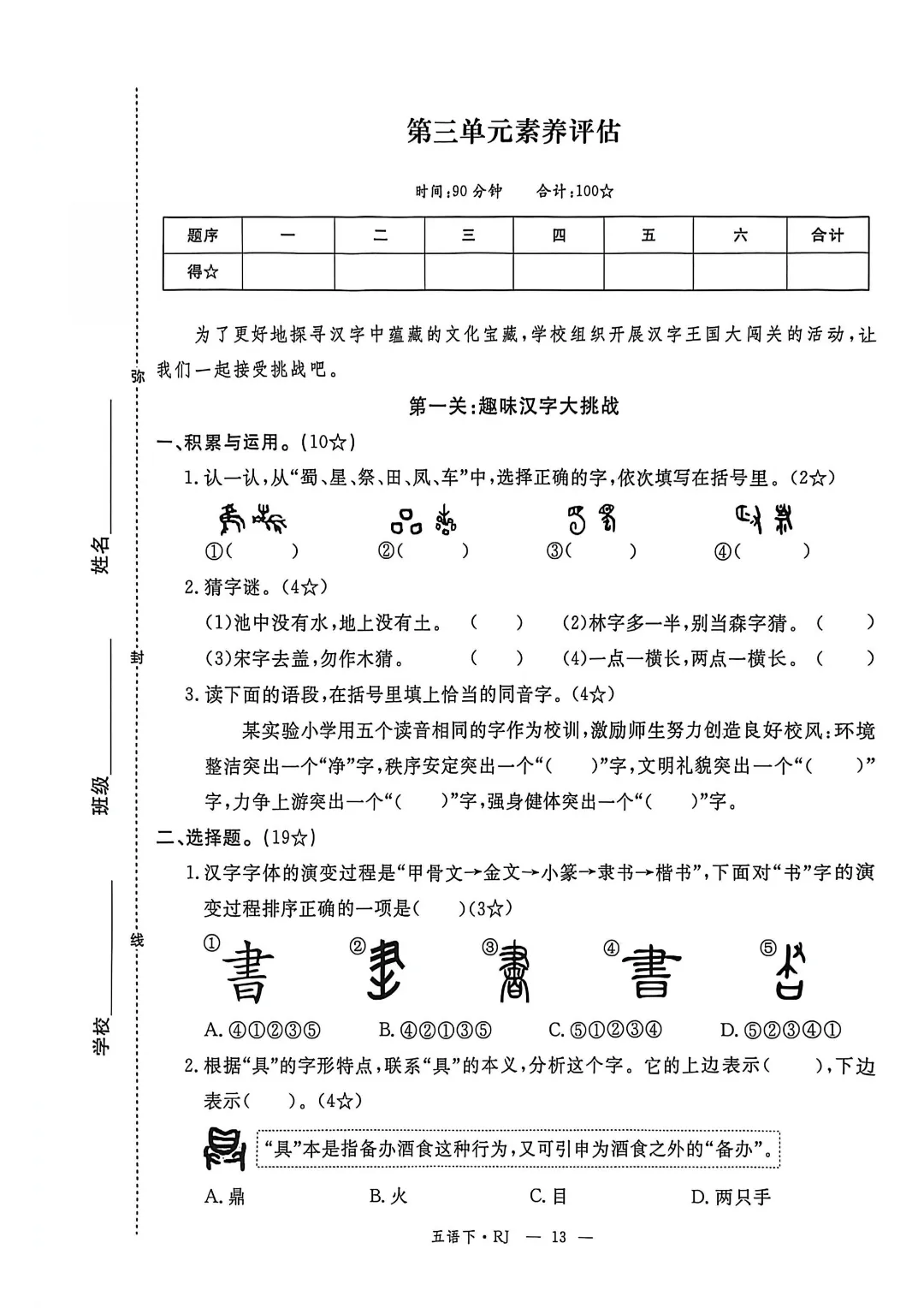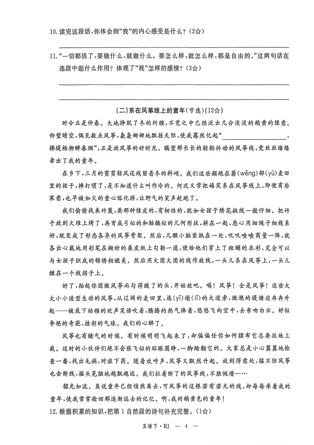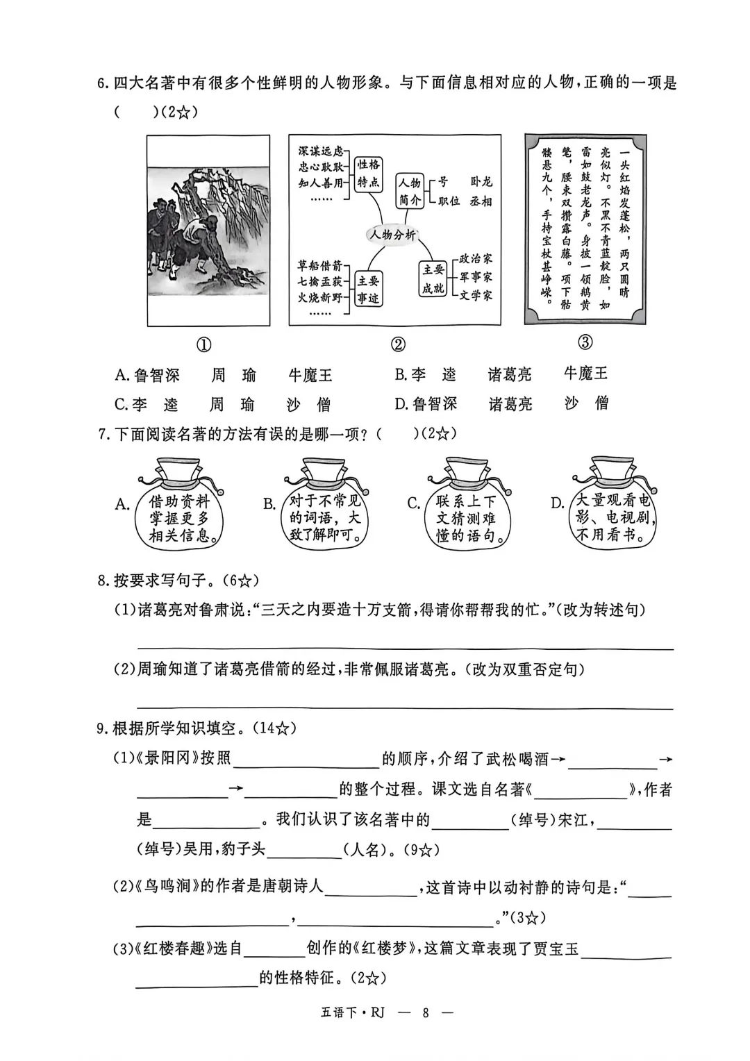 2026年春新部编版五年级下册语文《全册1-8单元素养卷+期中期末测试卷》10套附答案‖可打印