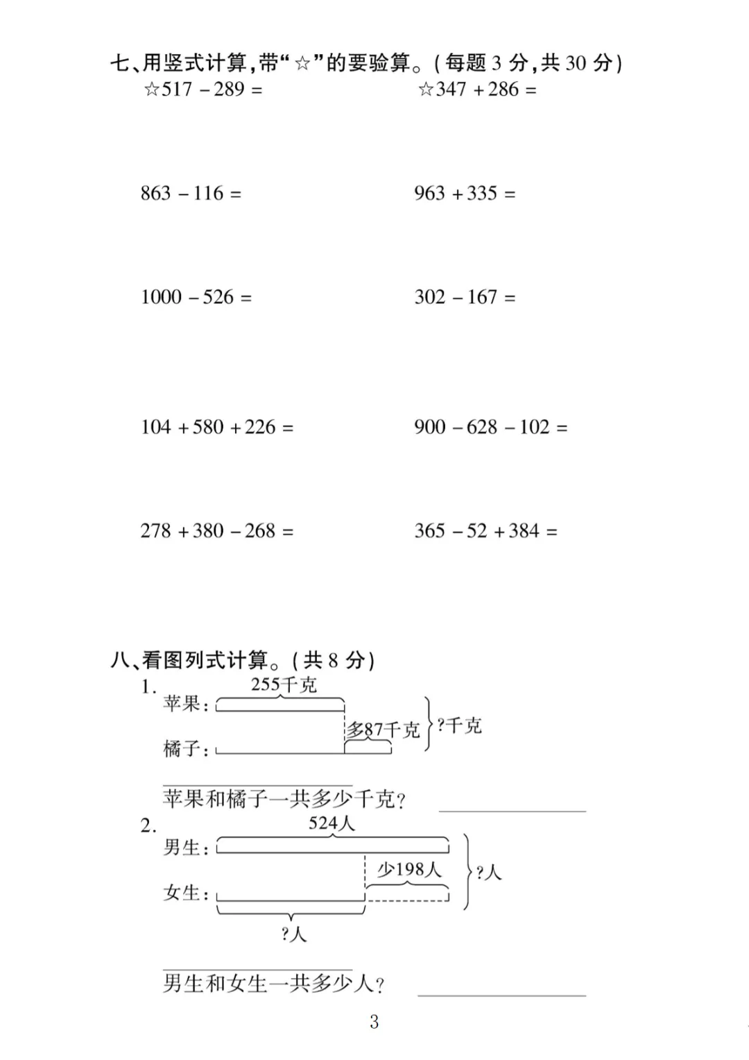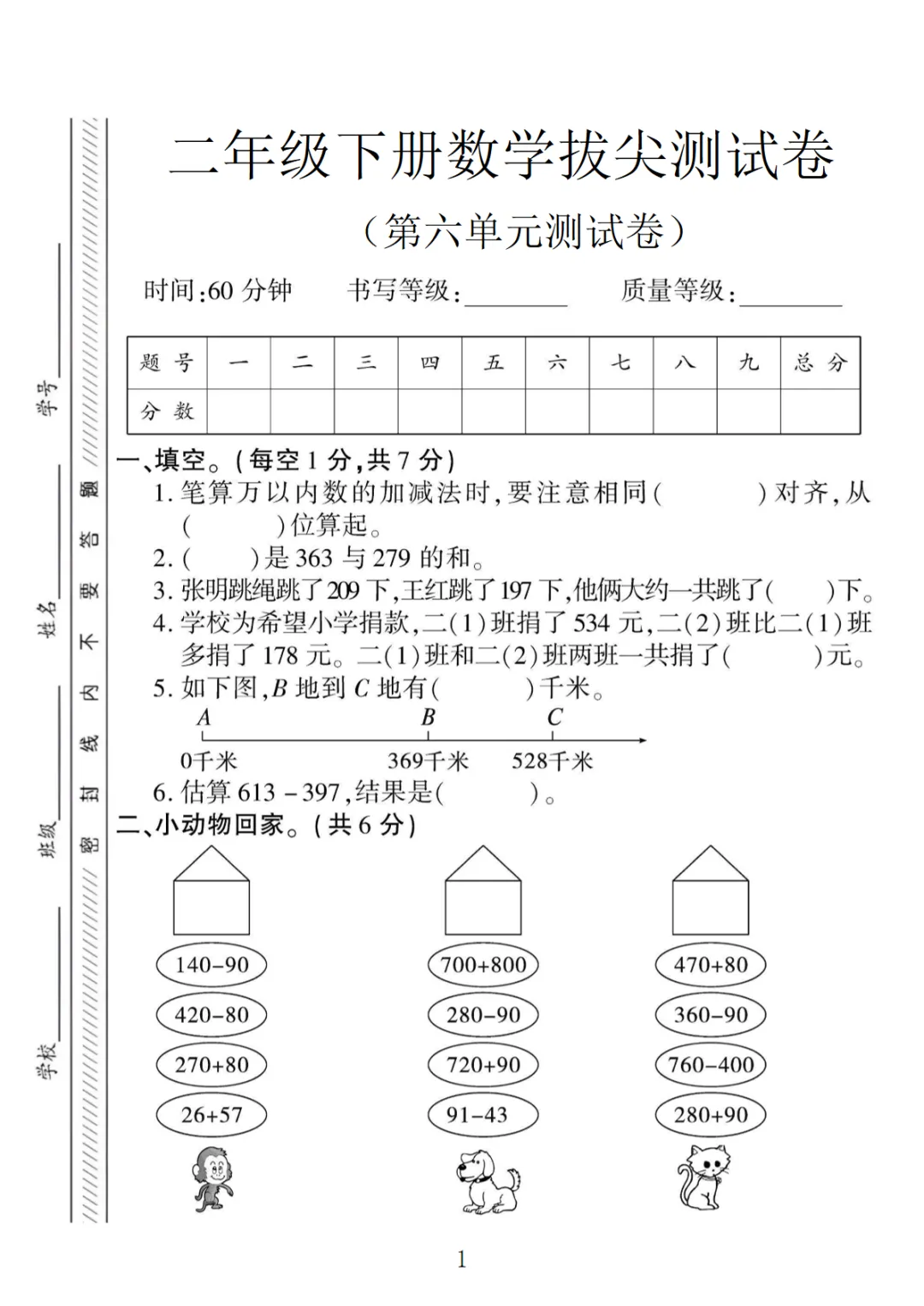 【高清电子版】二年级(下)数学 第六单元拔尖测试卷《苏教版》
