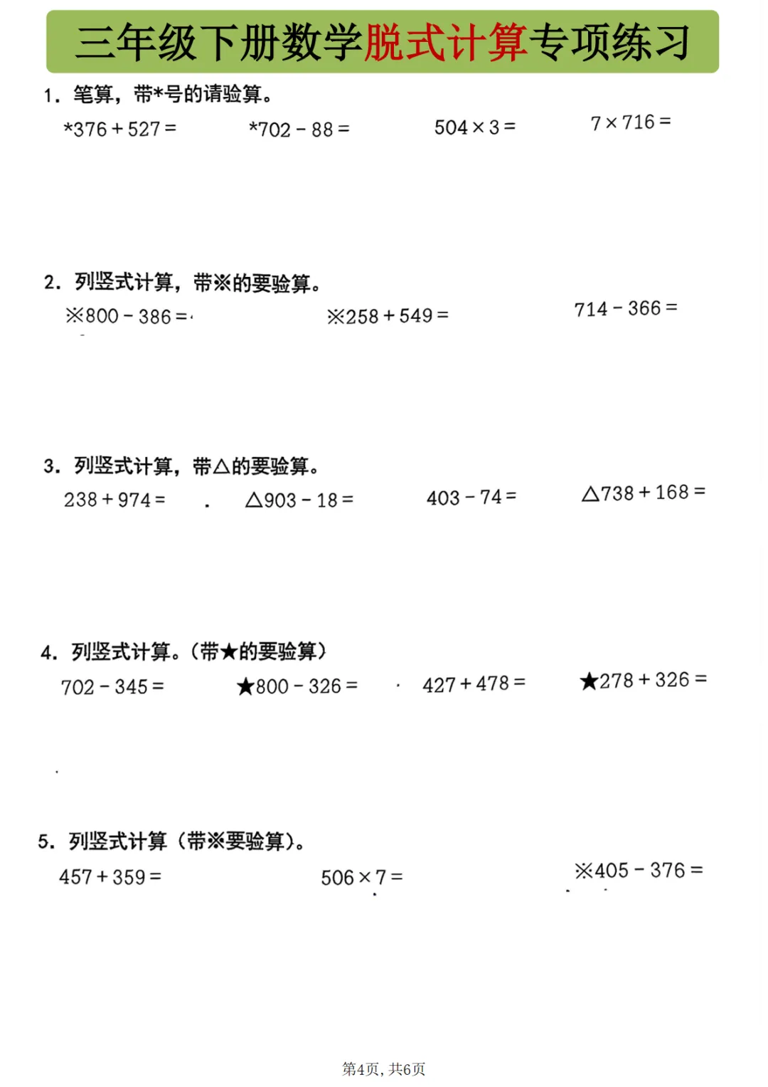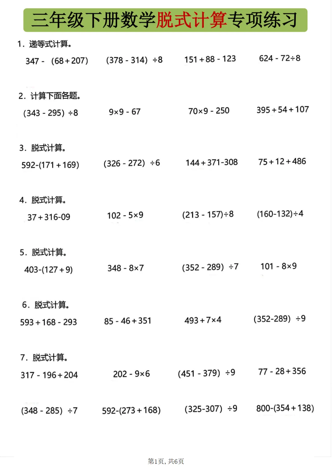 【免费下载】一年级(下)数学 附加思维训练题,PDF电子版,可打印