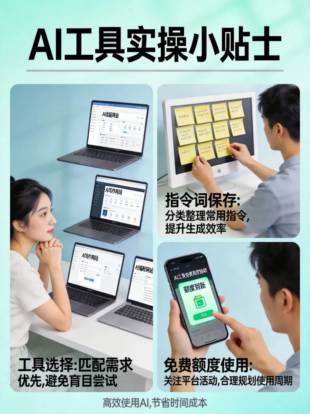 每个AI工具都有免费额度,先用免费版体验,确定适合自己再考虑付费升级。
