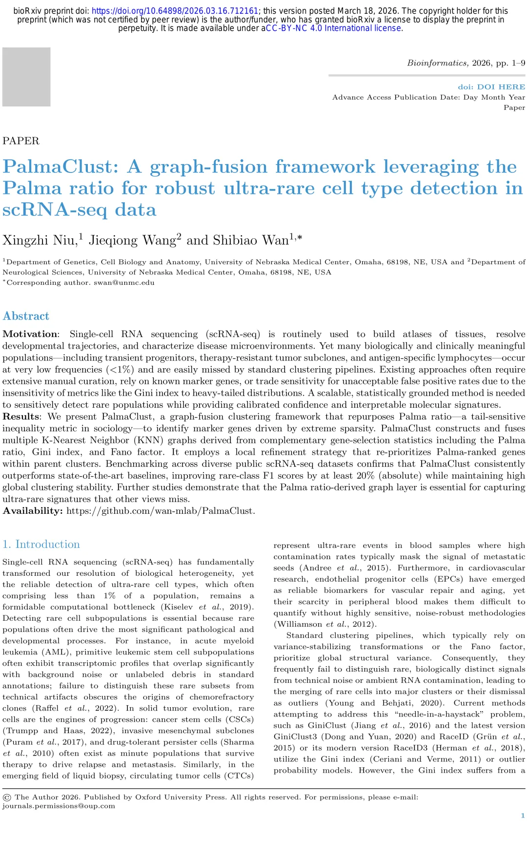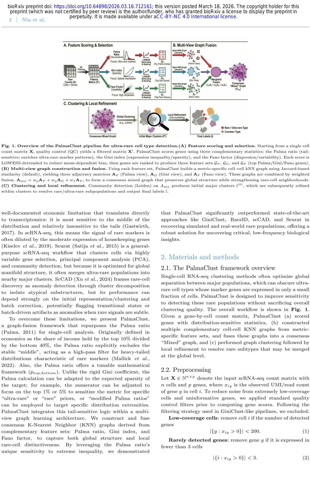 📚 文献引用:PalmaClust: A graph-fusion framework leveraging the Palma ratio for robust ultra-rare cell type detection in scRNA-seq data. , 2026.