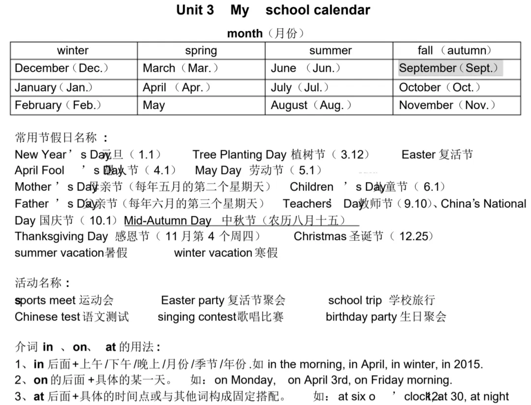 小学五年级下册英语各单元知识重点|免费下载可打印