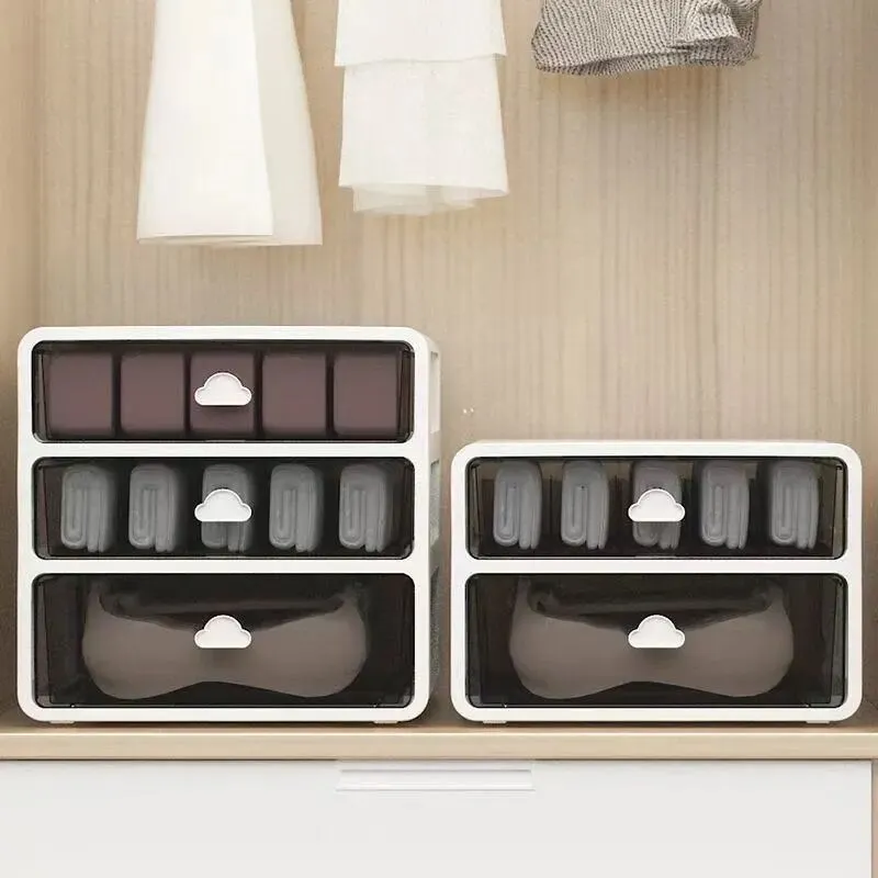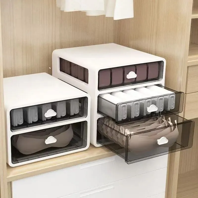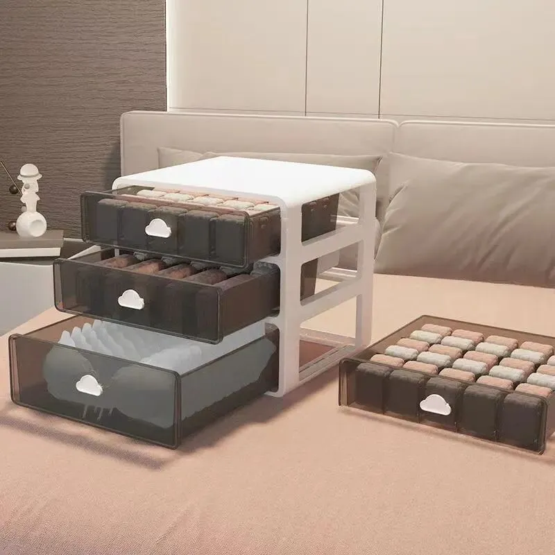 抽屉式的设计为日常使用带来了极大的便利。相比于传统的开放式收纳盒,抽屉式设计可以有效避免灰尘落入,保持内衣的清洁。而且,每个抽屉都可以独立拉开,在寻找衣物时,无需翻找整个整理箱,只需打开相应的抽屉,就能快速找到所需物品。这种有序的取用方式,不仅节省了时间,还让整理和收纳变得更加轻松愉快。此外,抽屉上通常会设计有拉手,方便推拉,即使手上拿着东西,也能轻松打开抽屉。