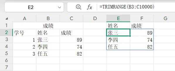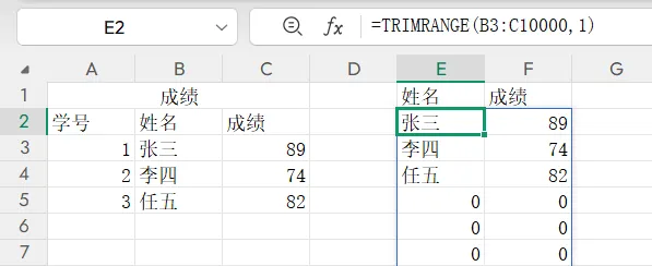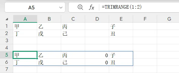 本例TRIMRANGE函数把空单元格改成了带0的单元格。