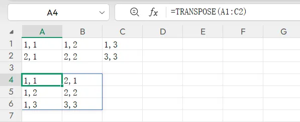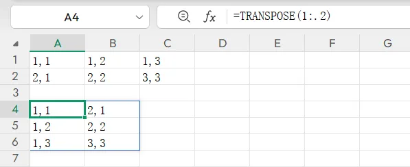 有时可能需要把数组的行列转换方向,可以用这个函数。比如: