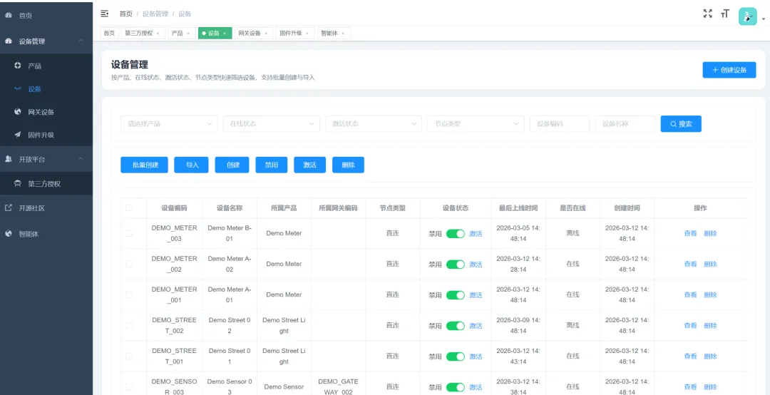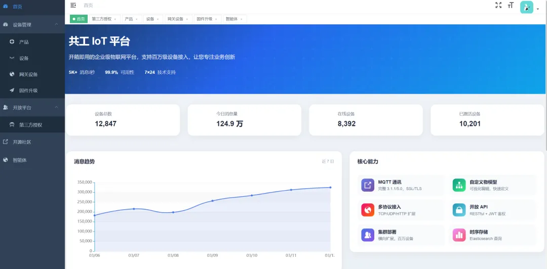 企业级物联网平台,专为物联网场景设计,支持高并发设备接入、灵活协议扩展及企业级管理功能