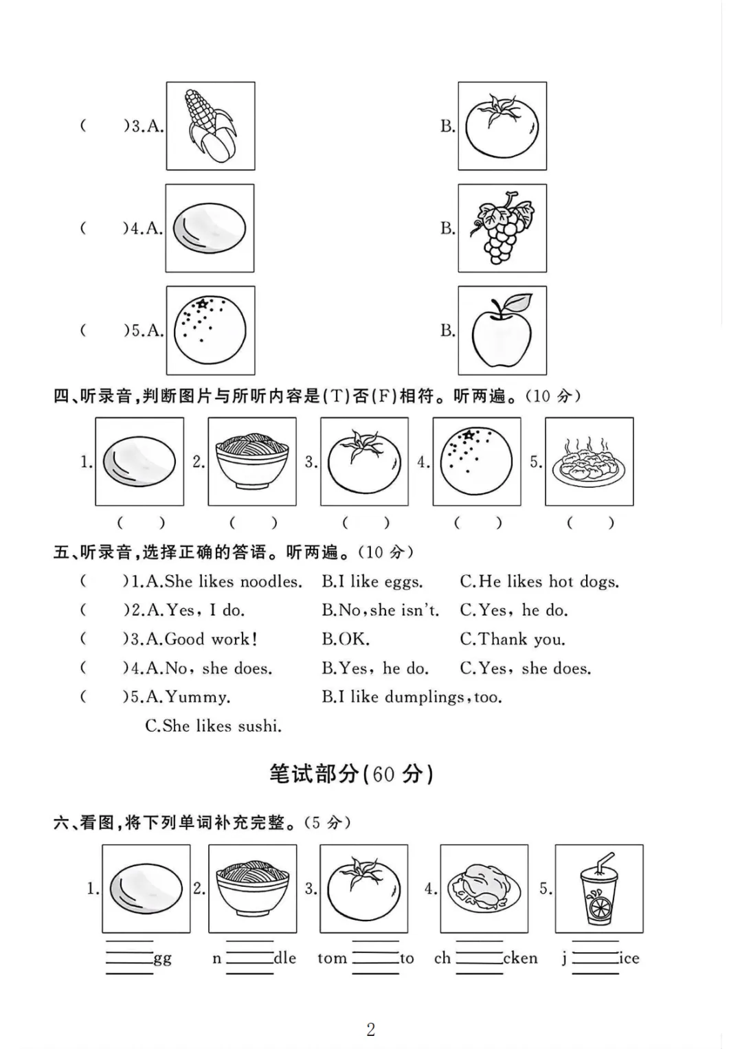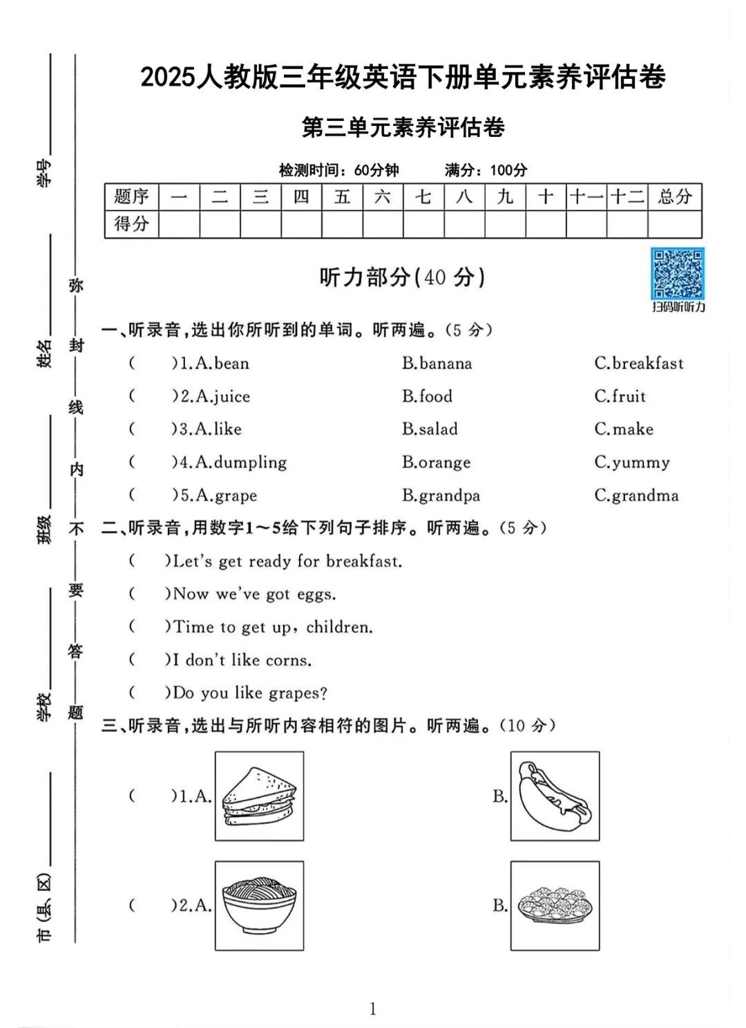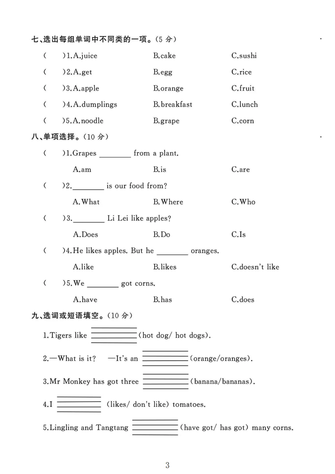【高清电子版】三年级(下)英语 第三单元测试卷3《人教PEP版》