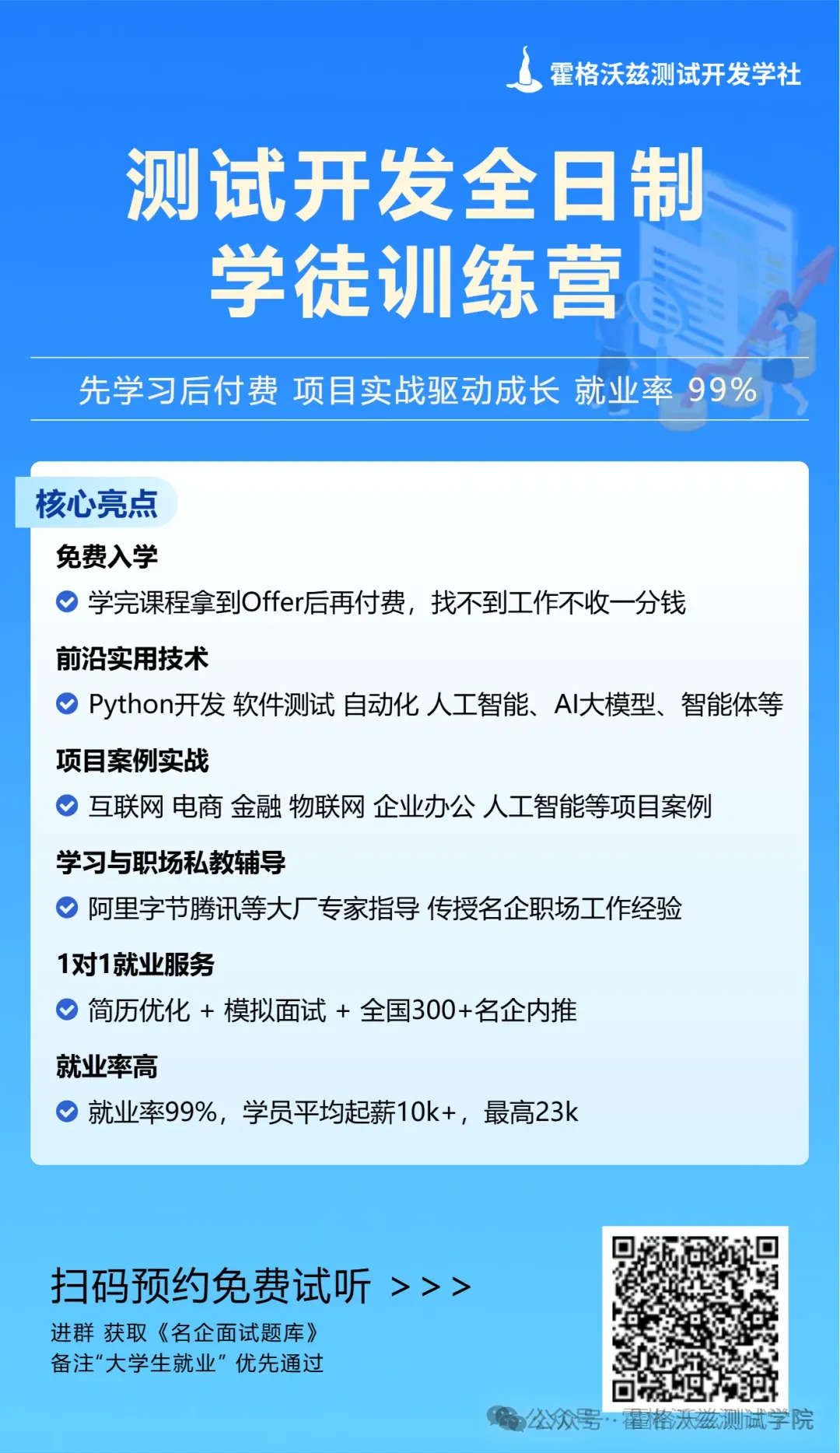 同时,学社结合真实行业需求,为在职测试工程师与高潜学员提供名企大厂 1v1 私教服务,用于个性化能力提升与工程实践指导。
