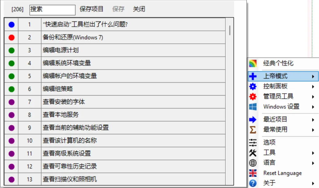 上帝模式功能如下