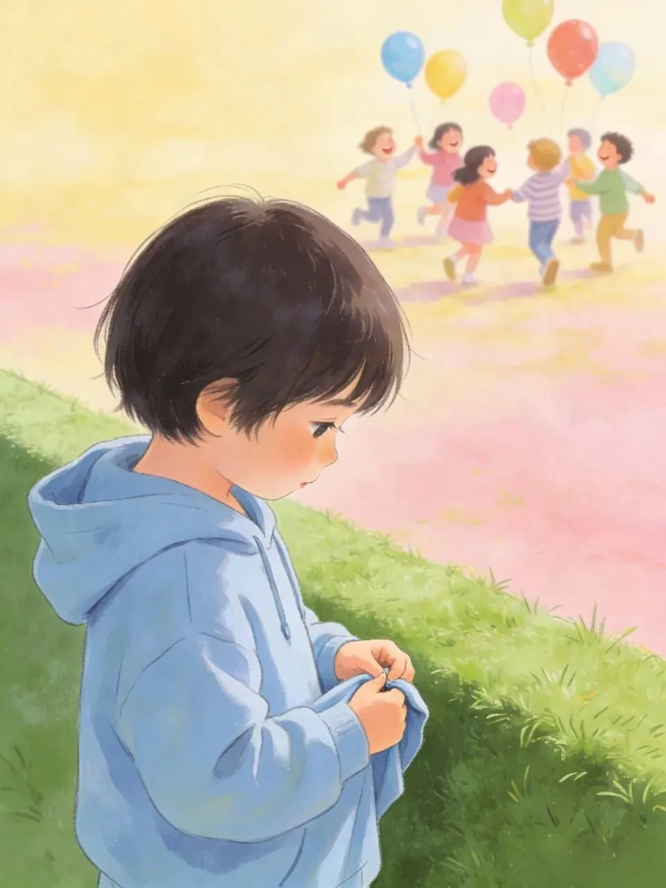 别急着说“你想多了”,蹲下来抱抱他:“爸爸妈妈很喜欢你。我们先从交一个好朋友开始,慢慢来就好。”