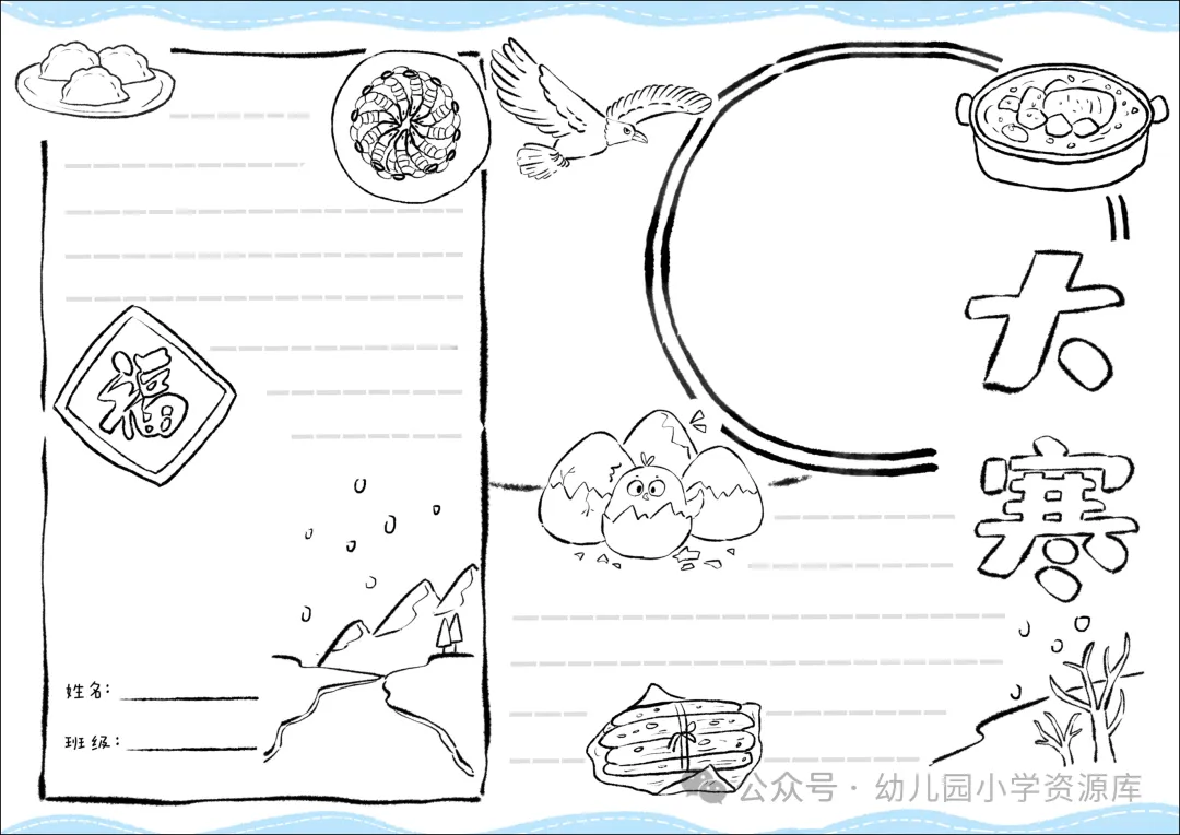 本次分享的「各类节日节气手抄报60幅」,不仅涵盖了立春、立夏、立秋、立冬等24节气,还融入了丰富的节日元素,如春节、端午节、中秋节等。每一幅手抄报都精心设计,以生动的插图和趣味的文字,引导孩子们了解每个节气和节日的来历、习俗和意义。