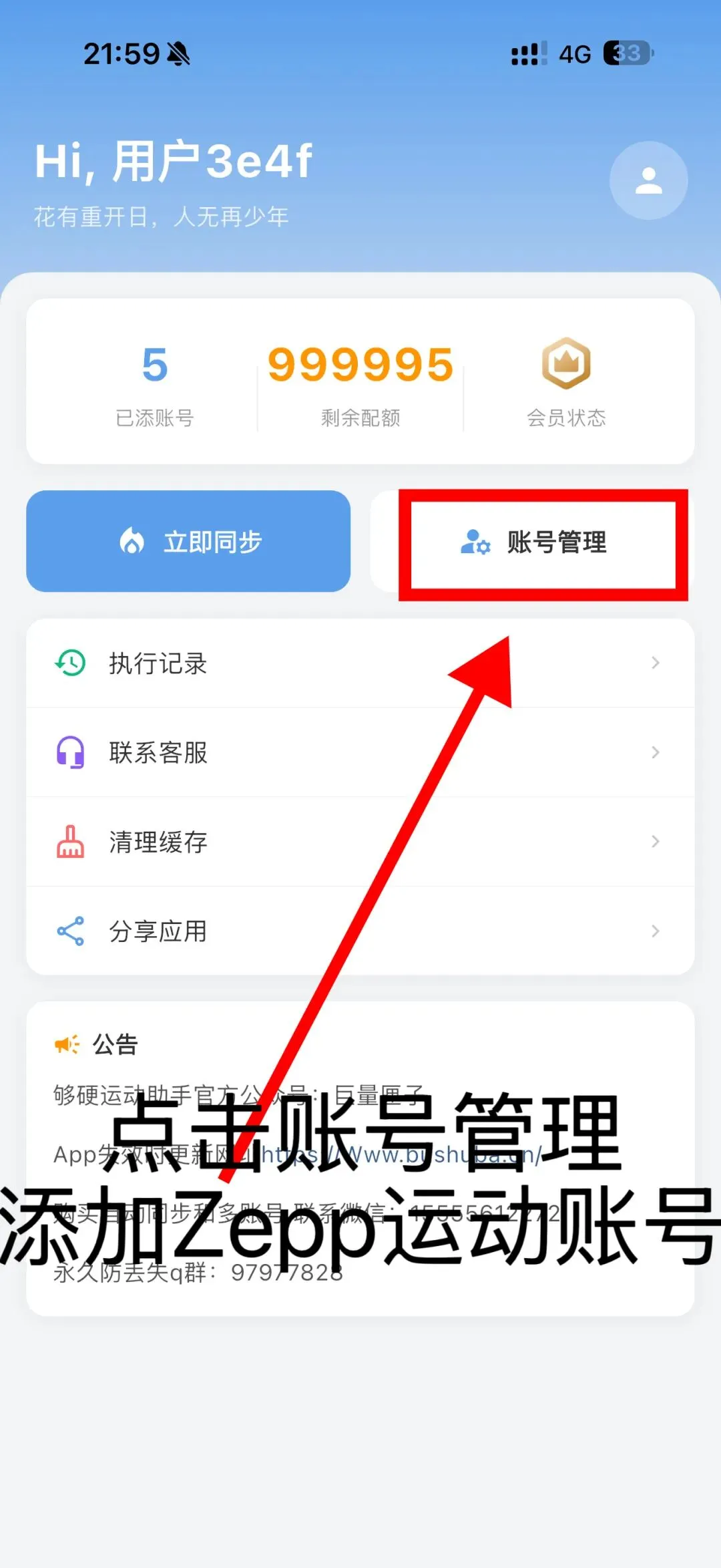 3. 点击 立即同步(×个账号) 完成手动同步