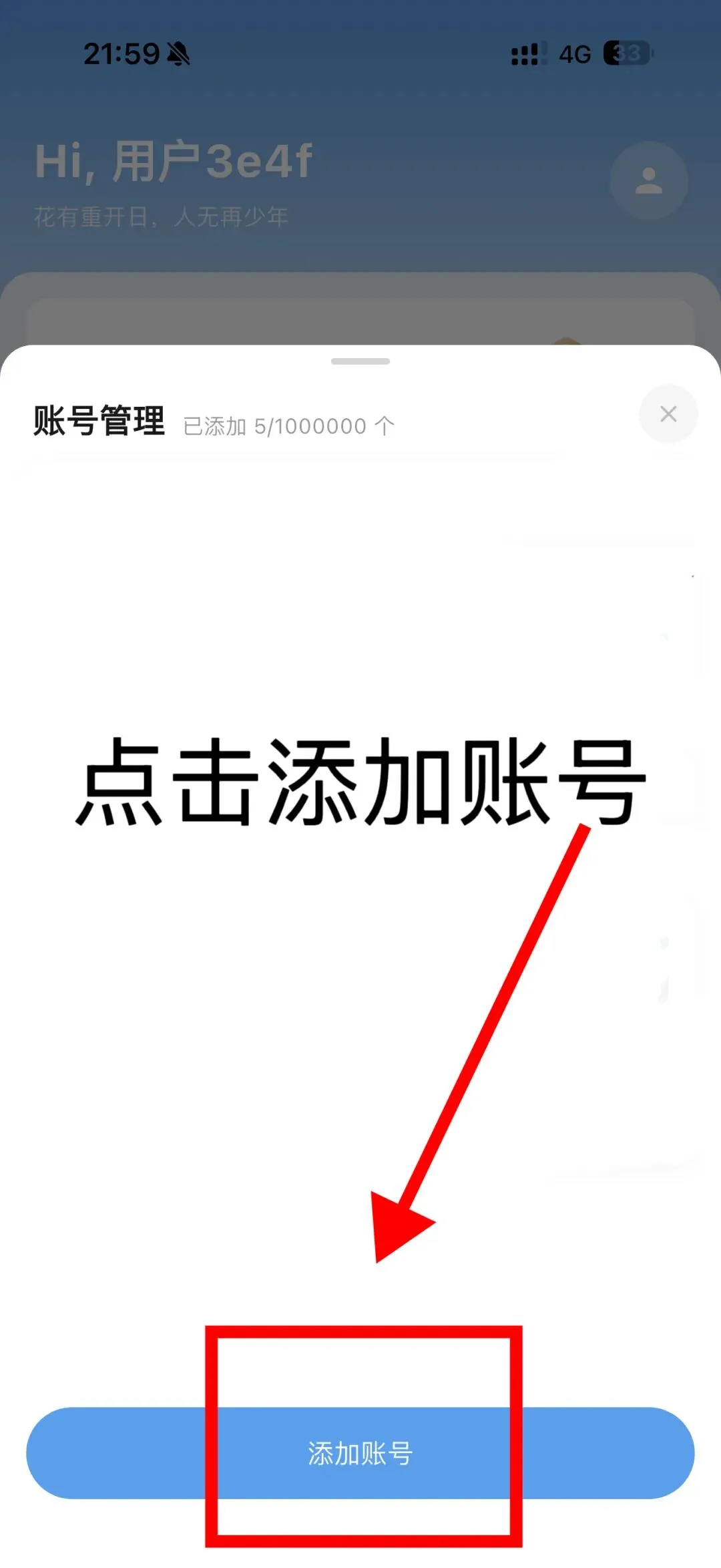 1. 打开App首页,点击 账号管理 按钮