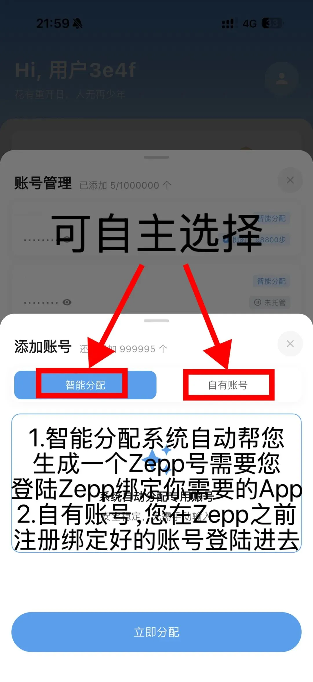 ◦ 智能分配:系统自动生成新Zepp账号,需后续登录Zepp绑定目标App