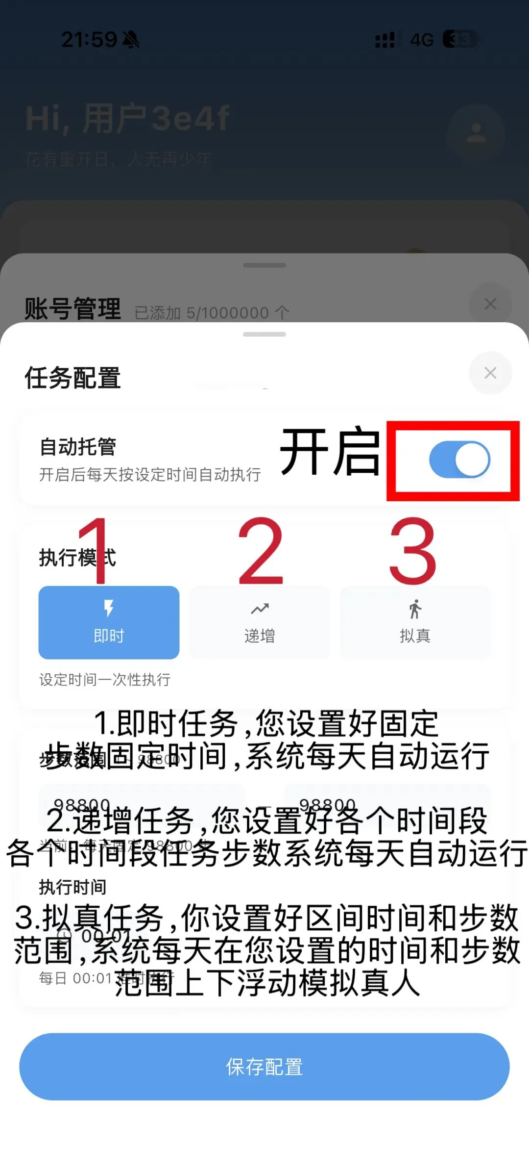 • 优先选择 拟真模式,步数波动更自然,降低账号风险